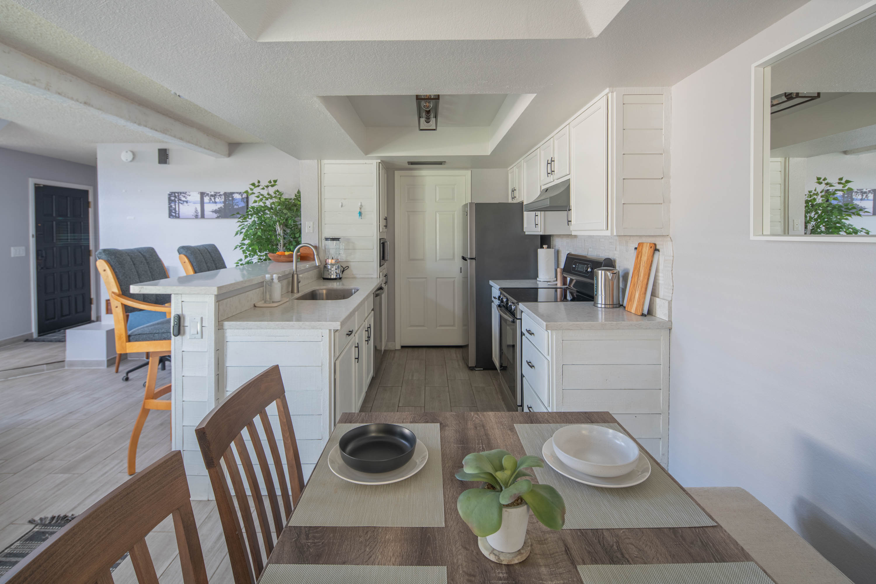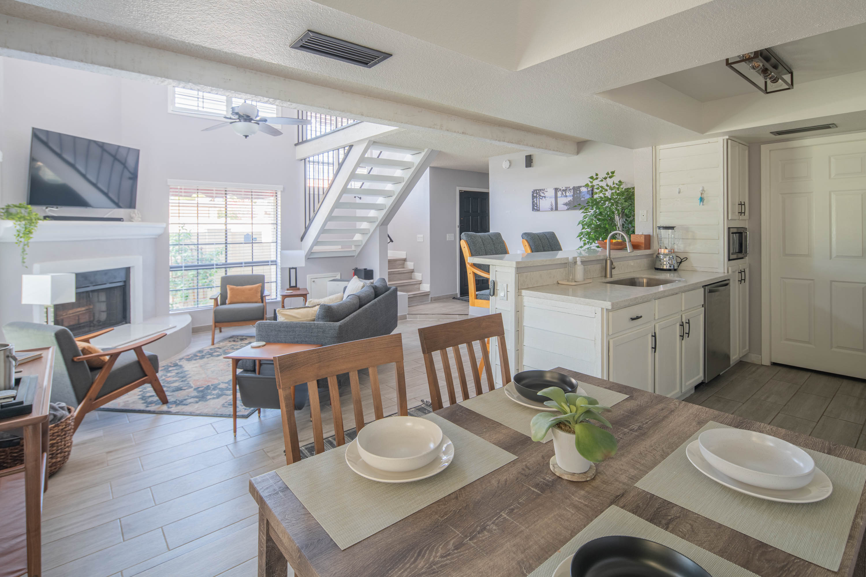 Available Now! Enjoy the best of Arizona living in our beautifully appointed two-bedroom townhouse in the Ahwatukee Foothills. Perfect for solo or couple travelers. With vaulted ceilings and designer furnishings, our townhouse offers a relaxed experience. Cook your favorite meals in a fully equipped kitchen featuring all-new stainless steel appliances. Enjoy fast, free WiFi for remote work with all utilities are included. Our home is turn-key, ideal for extended stays of three months or more.