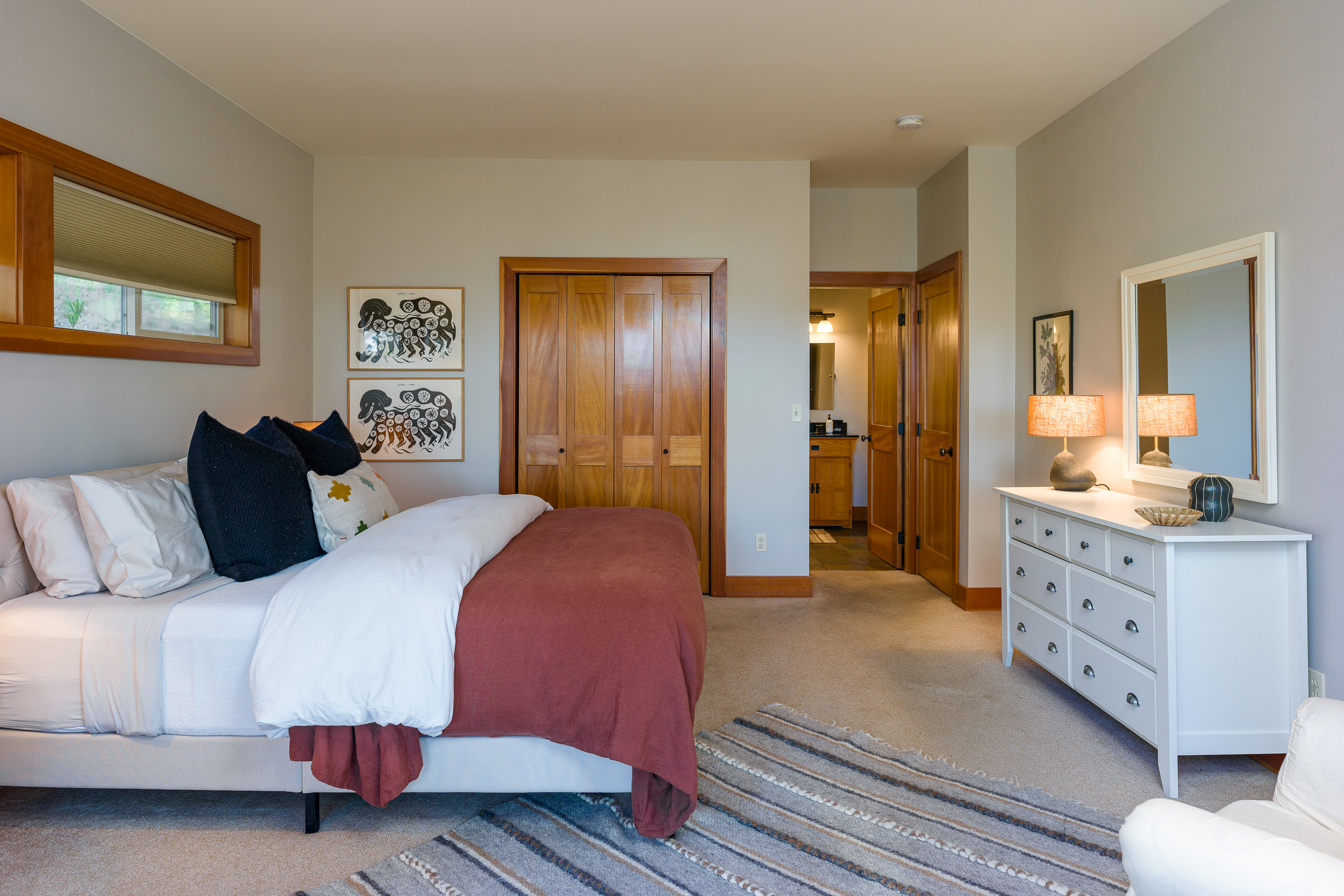 As you step through the front door, you’ll be greeted by our inviting great room, which seamlessly combines the kitchen, dining, and living areas. Our kitchen is a chef’s dream, featuring Bosch appliances and an array of cookware and gadgets to whip up delicious meals for your loved ones. 🍽️ The living and dining rooms are furnished with modern, comfortable pieces from West Elm, making it the ideal spot to relax and enjoy each other’s company. And don’t forget to step out onto the large balcony, where you can soak in the water views and enjoy al fresco dining when the weather is just right! 🌅
