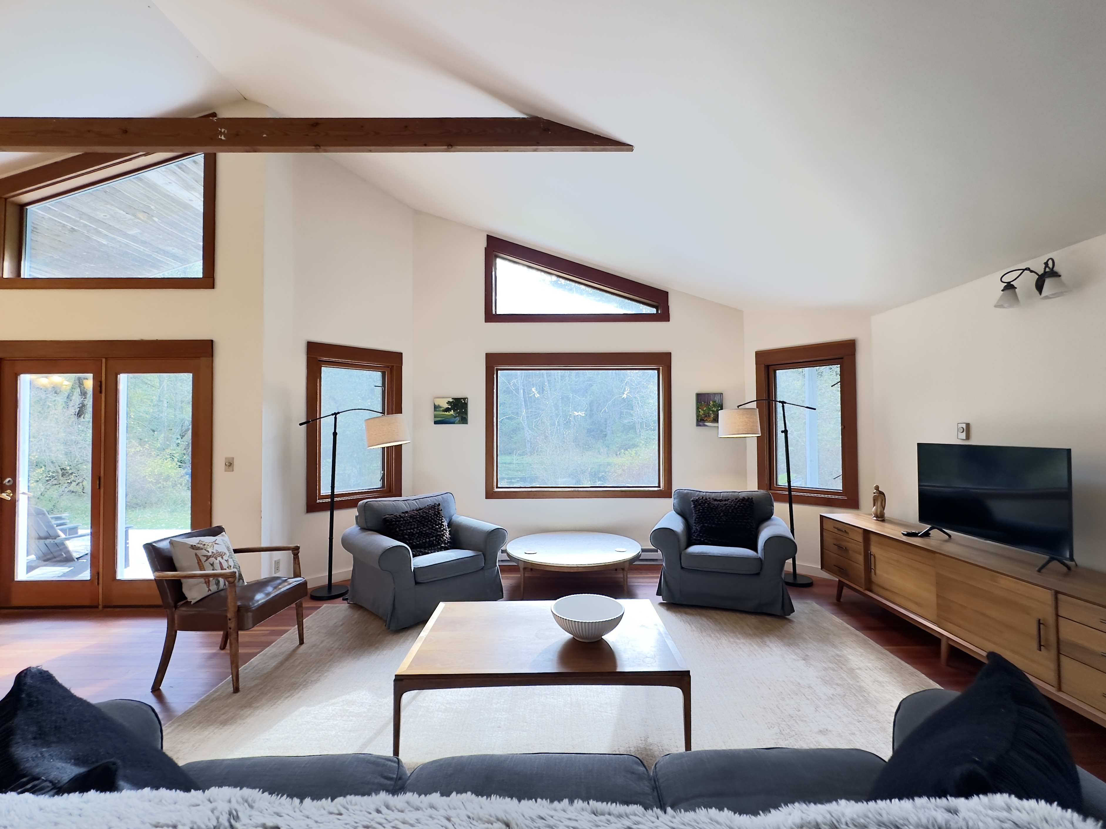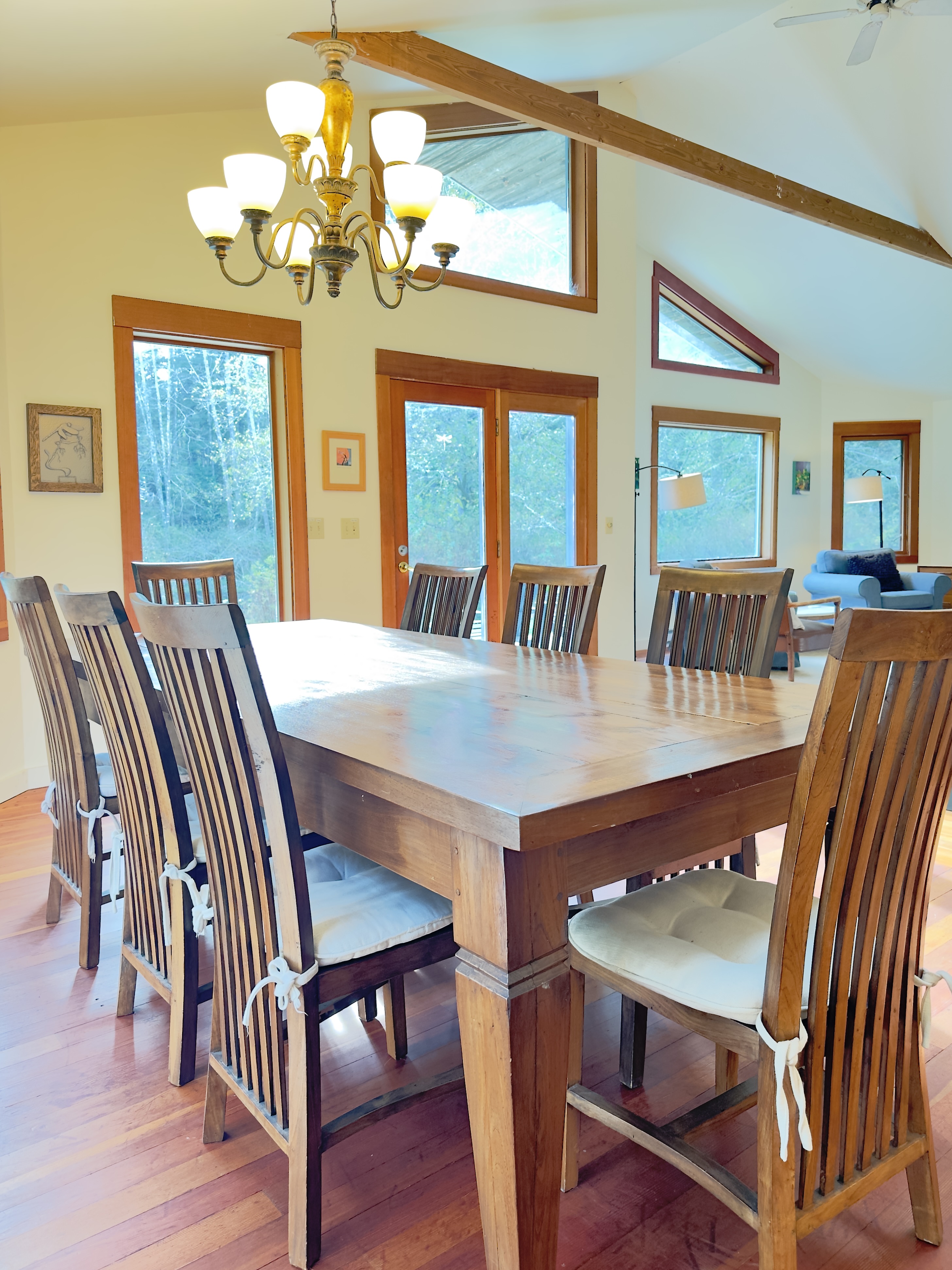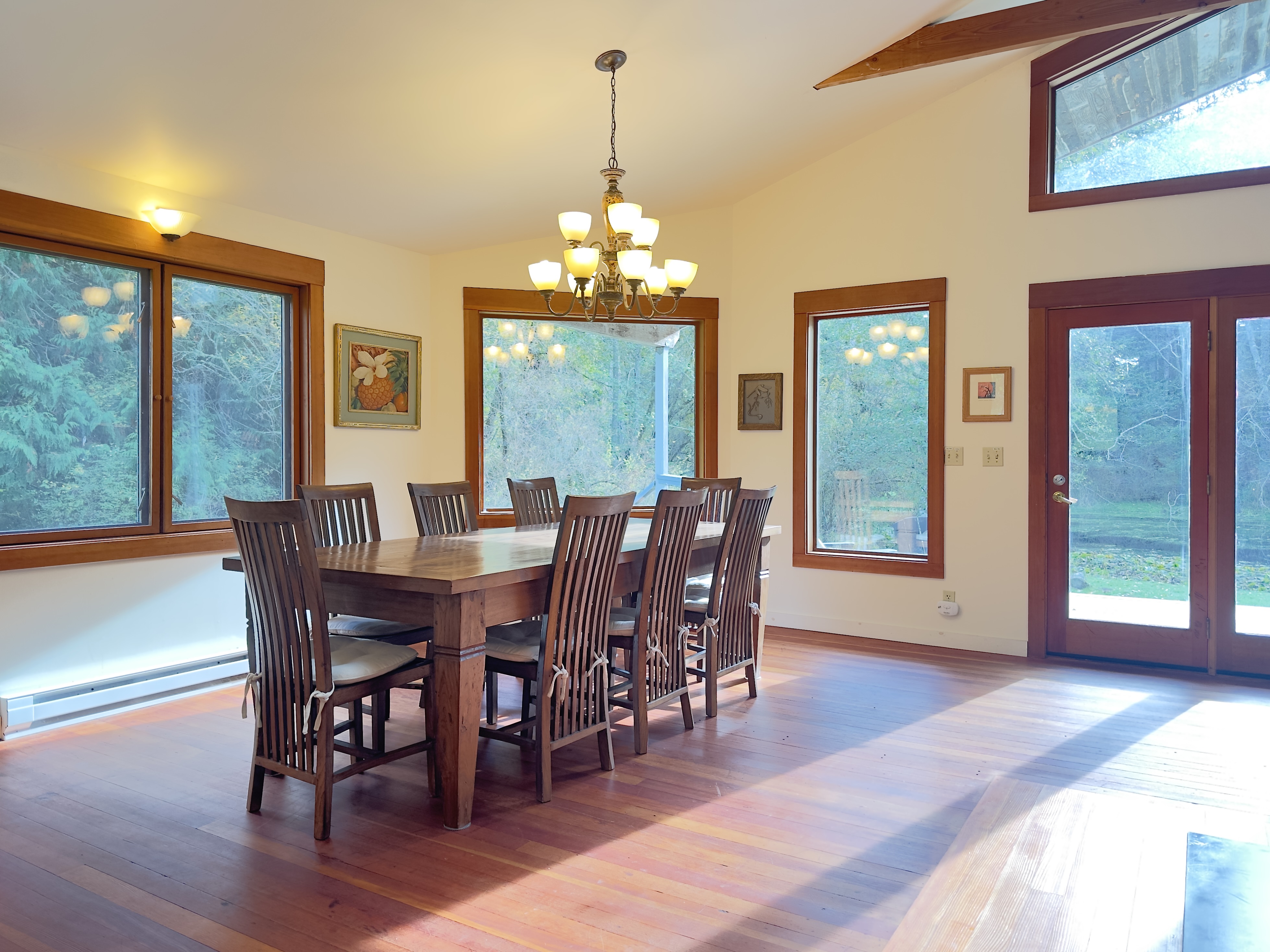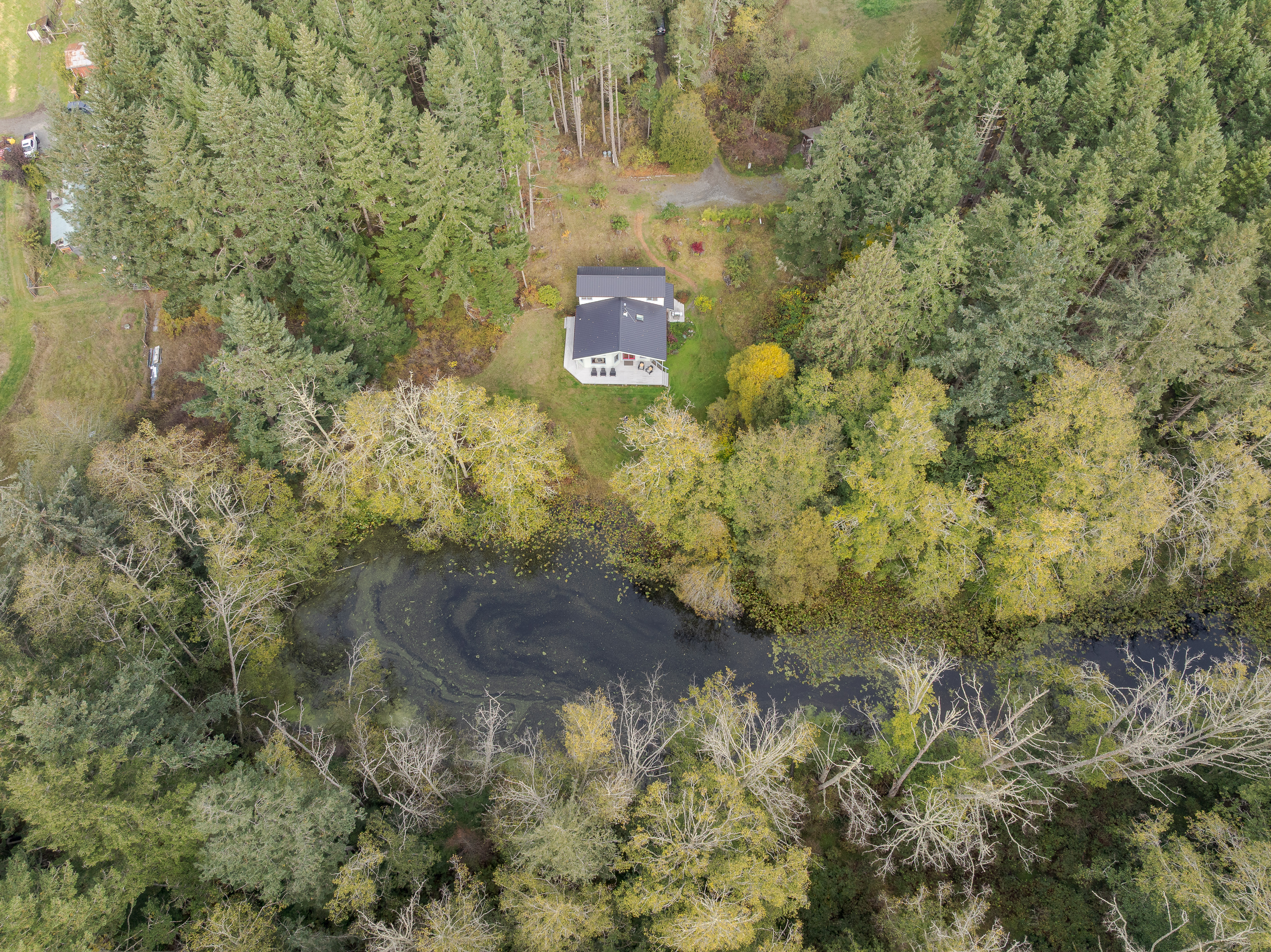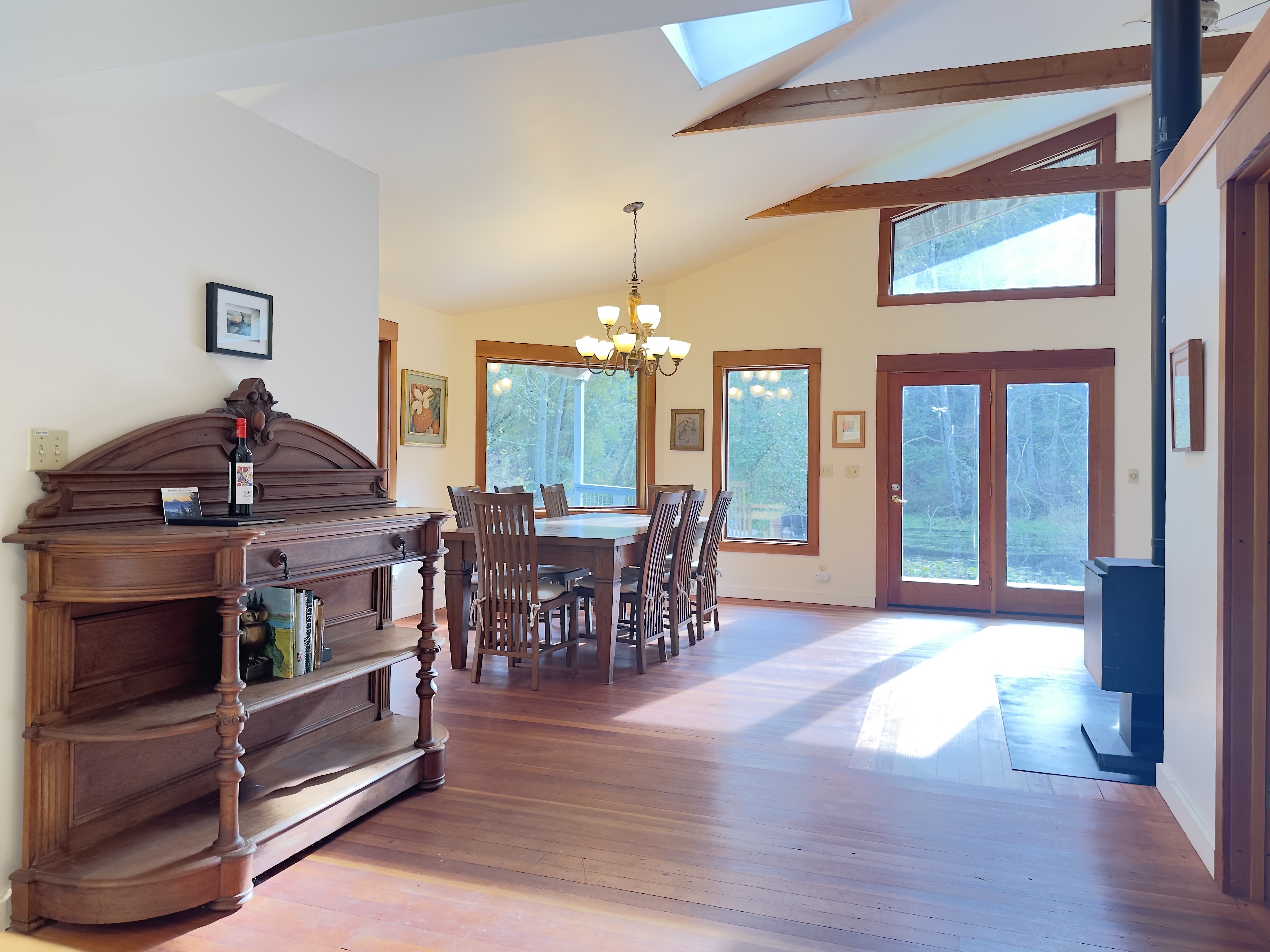 Dragonfly Pond house is a rustic, spacious, light-filled vacation rental home on Orcas Island with high ceilings overlooking a tranquil pond. Clean & comfy. Located in 7 acres of forest, it's peaceful and secluded. Close to town and the ferry. High-speed Internet.