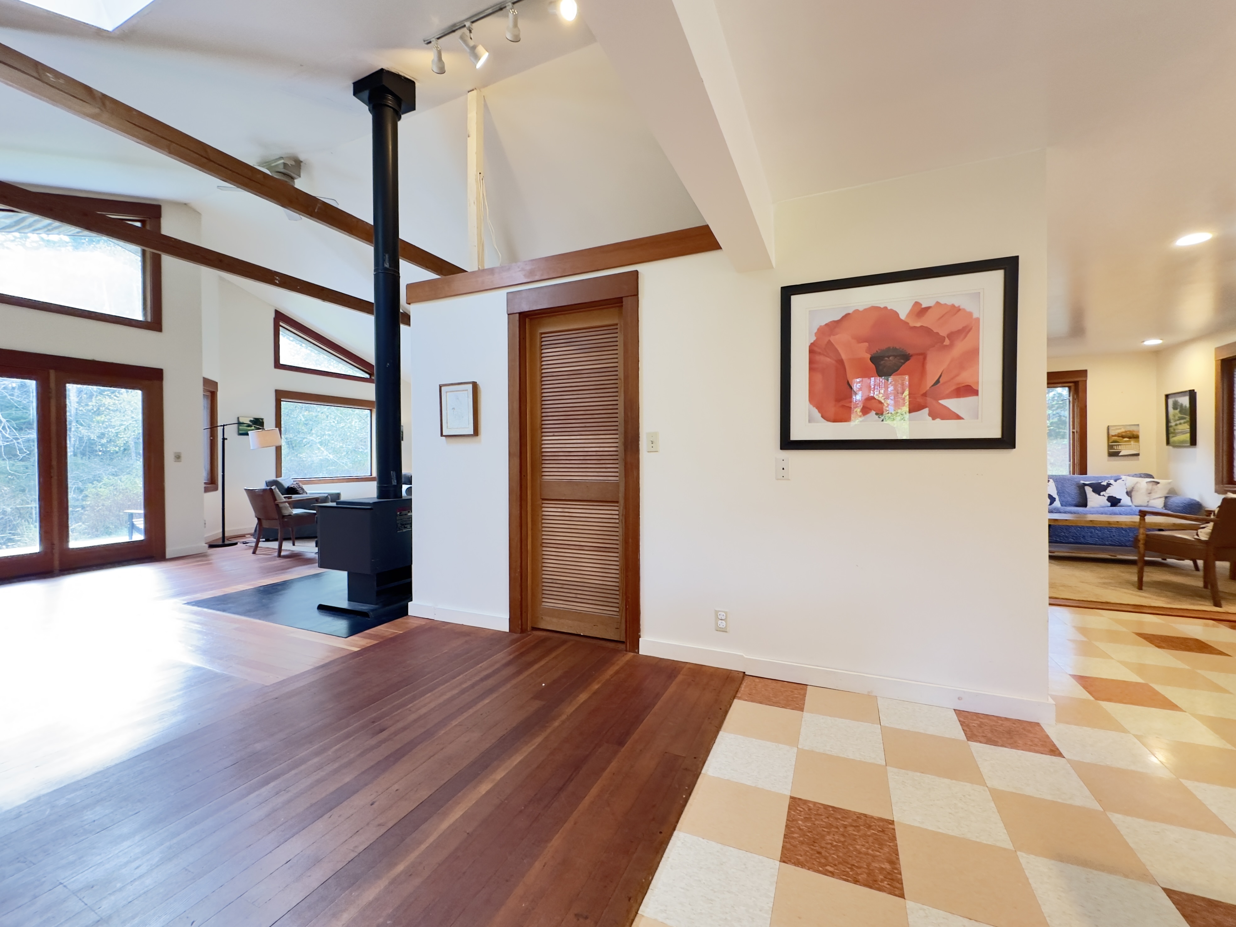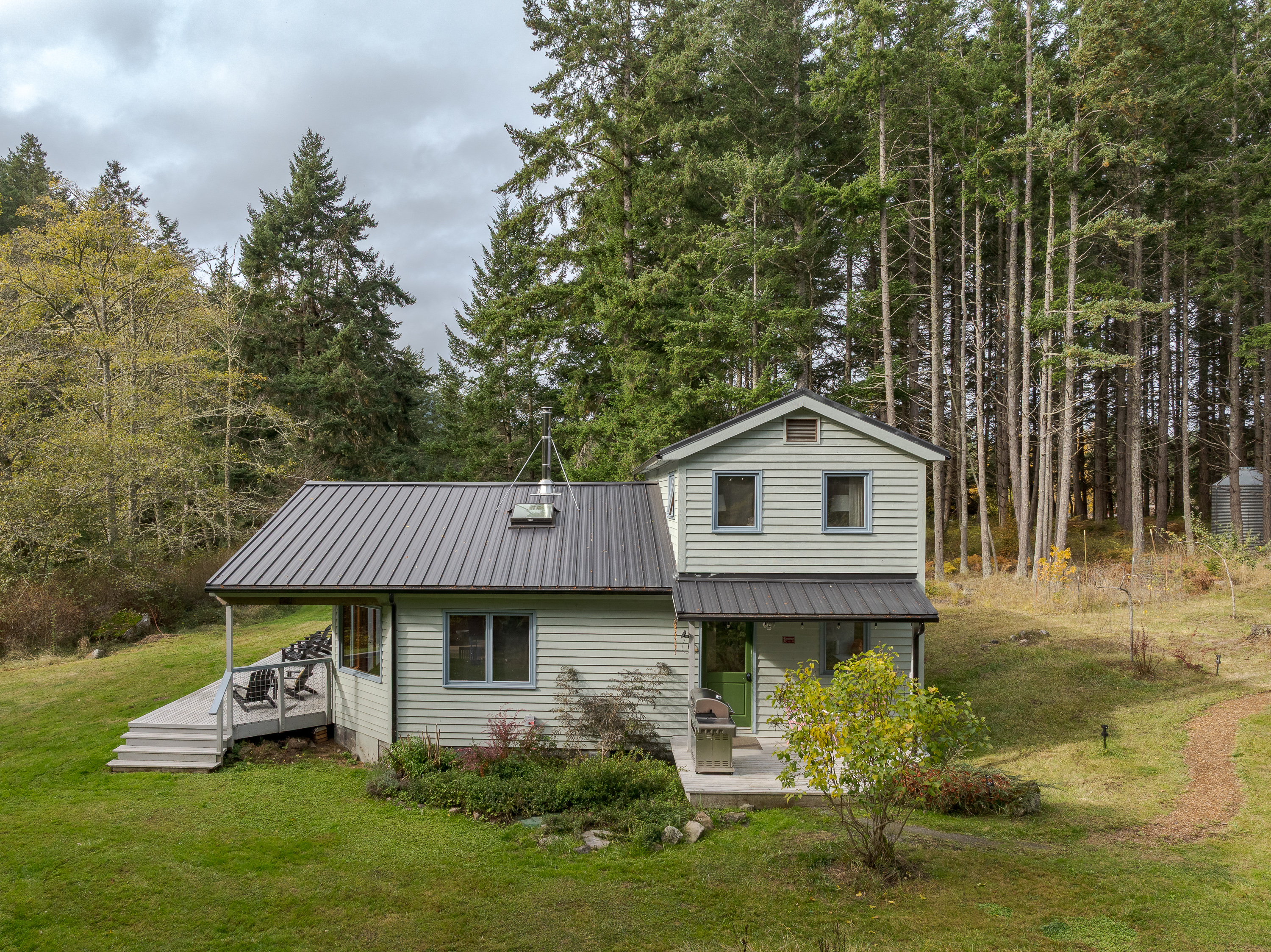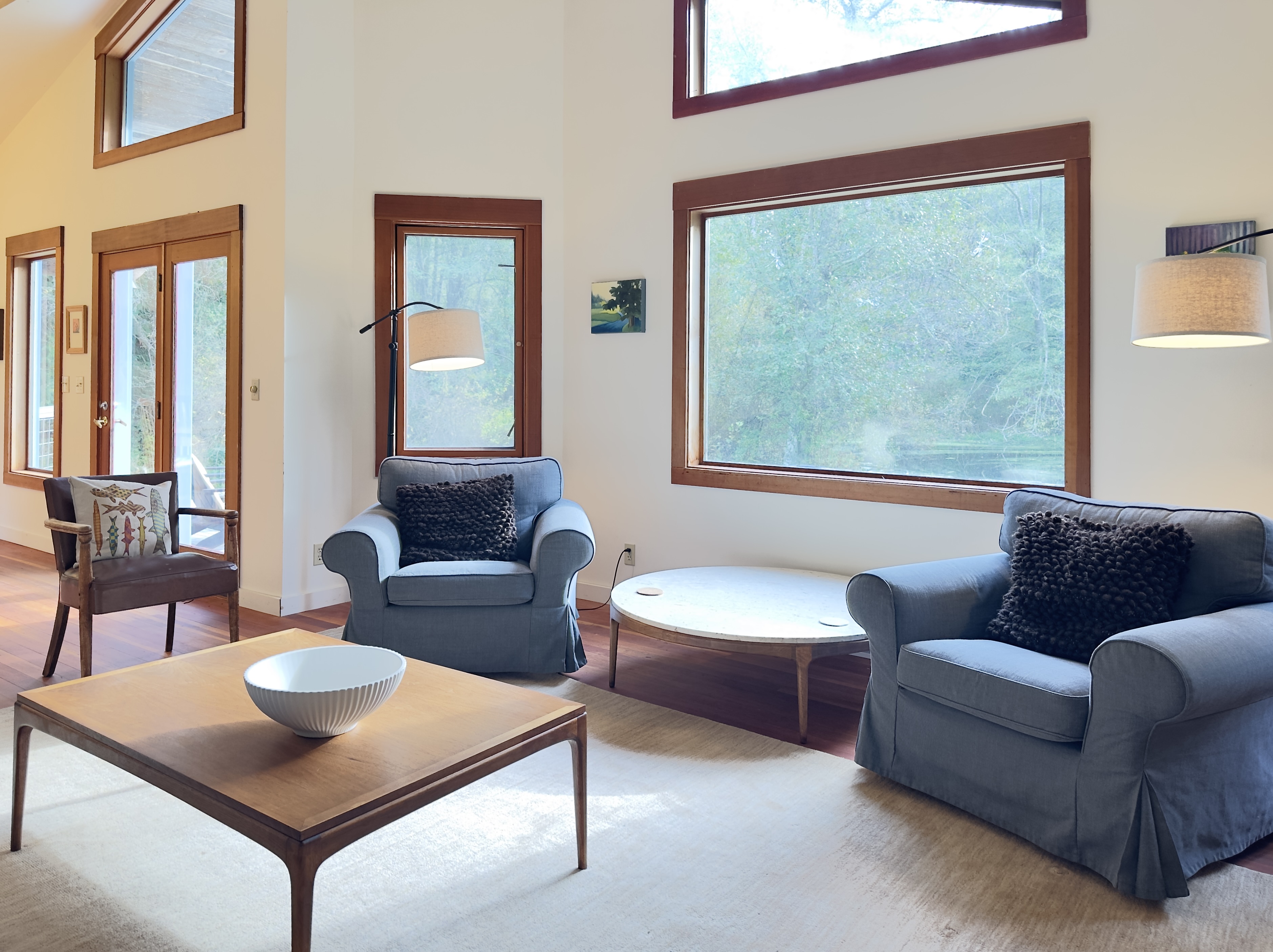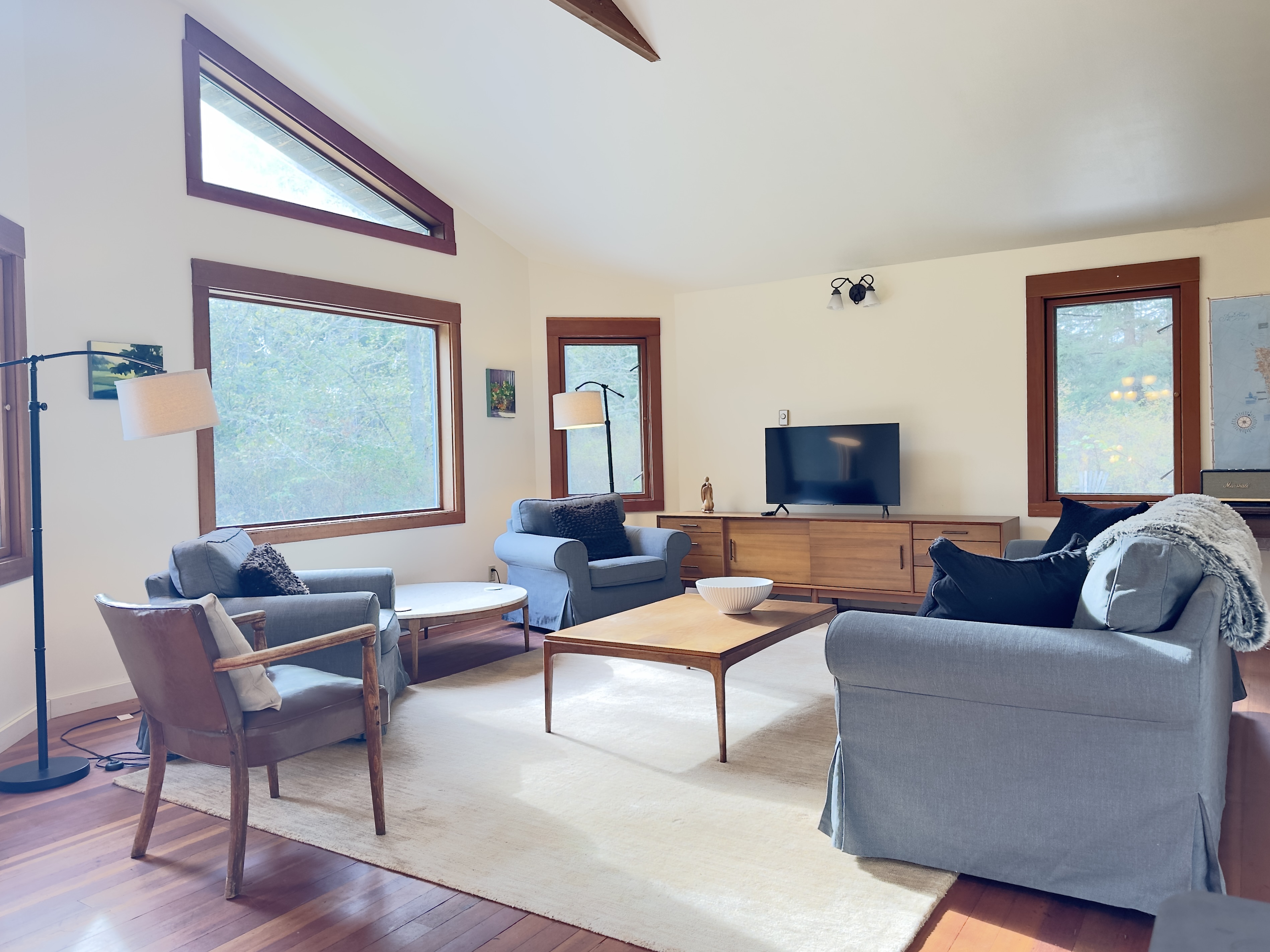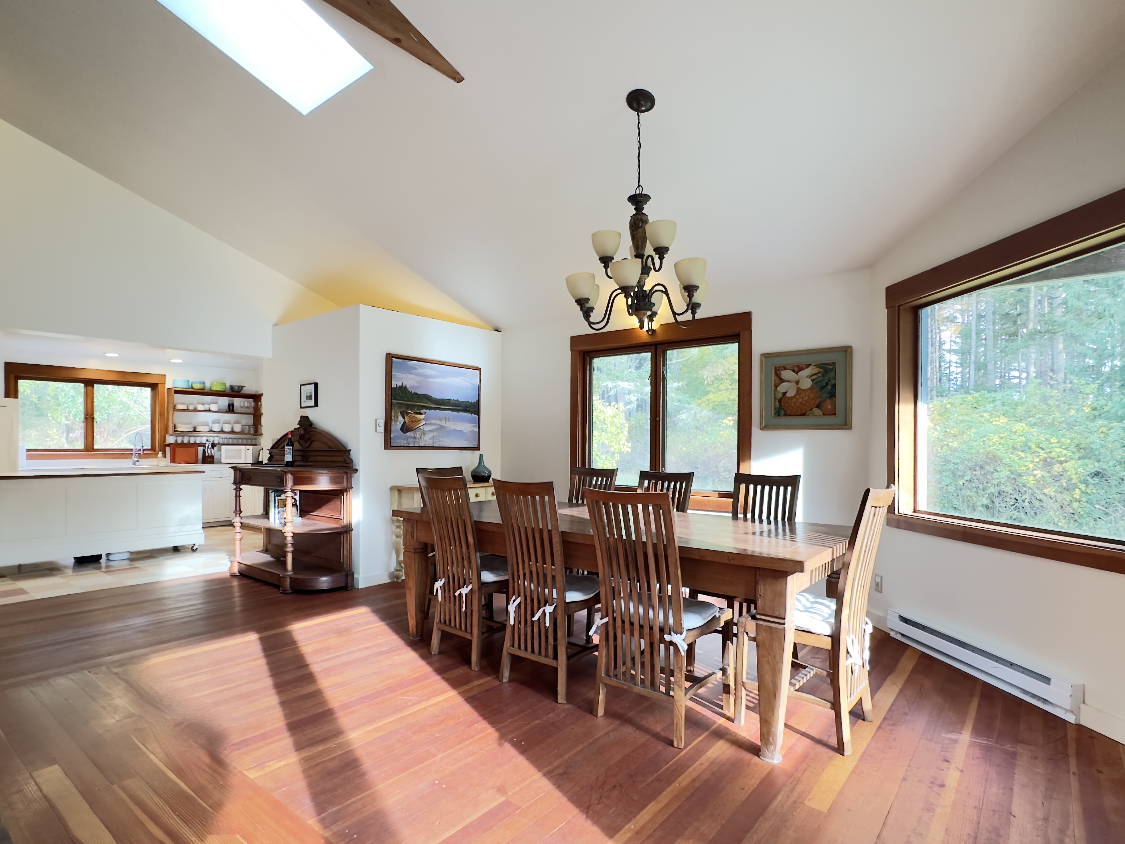 Dragonfly Pond house is a rustic, spacious, light-filled vacation rental home on Orcas Island with high ceilings overlooking a tranquil pond. Clean & comfy. Located in 7 acres of forest, it's peaceful and secluded. Close to town and the ferry. High-speed Internet.