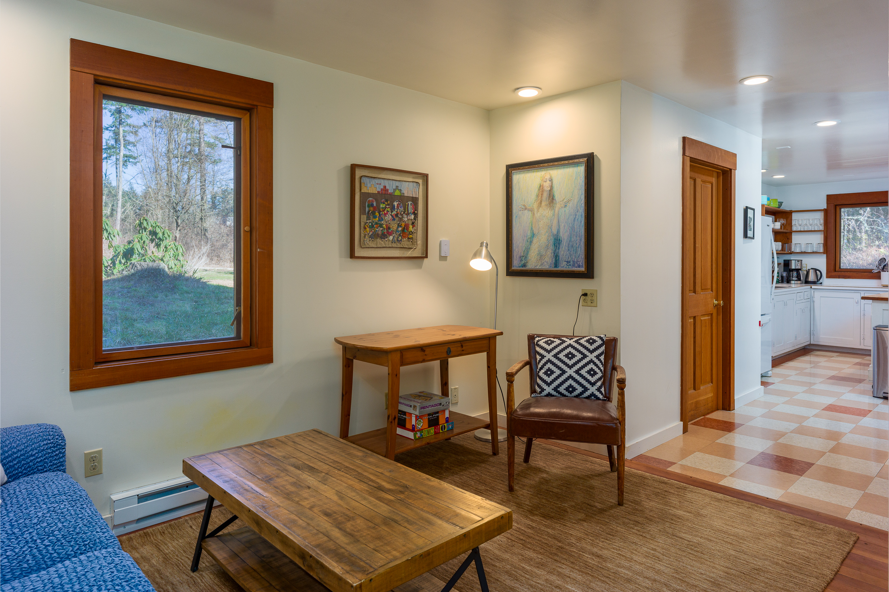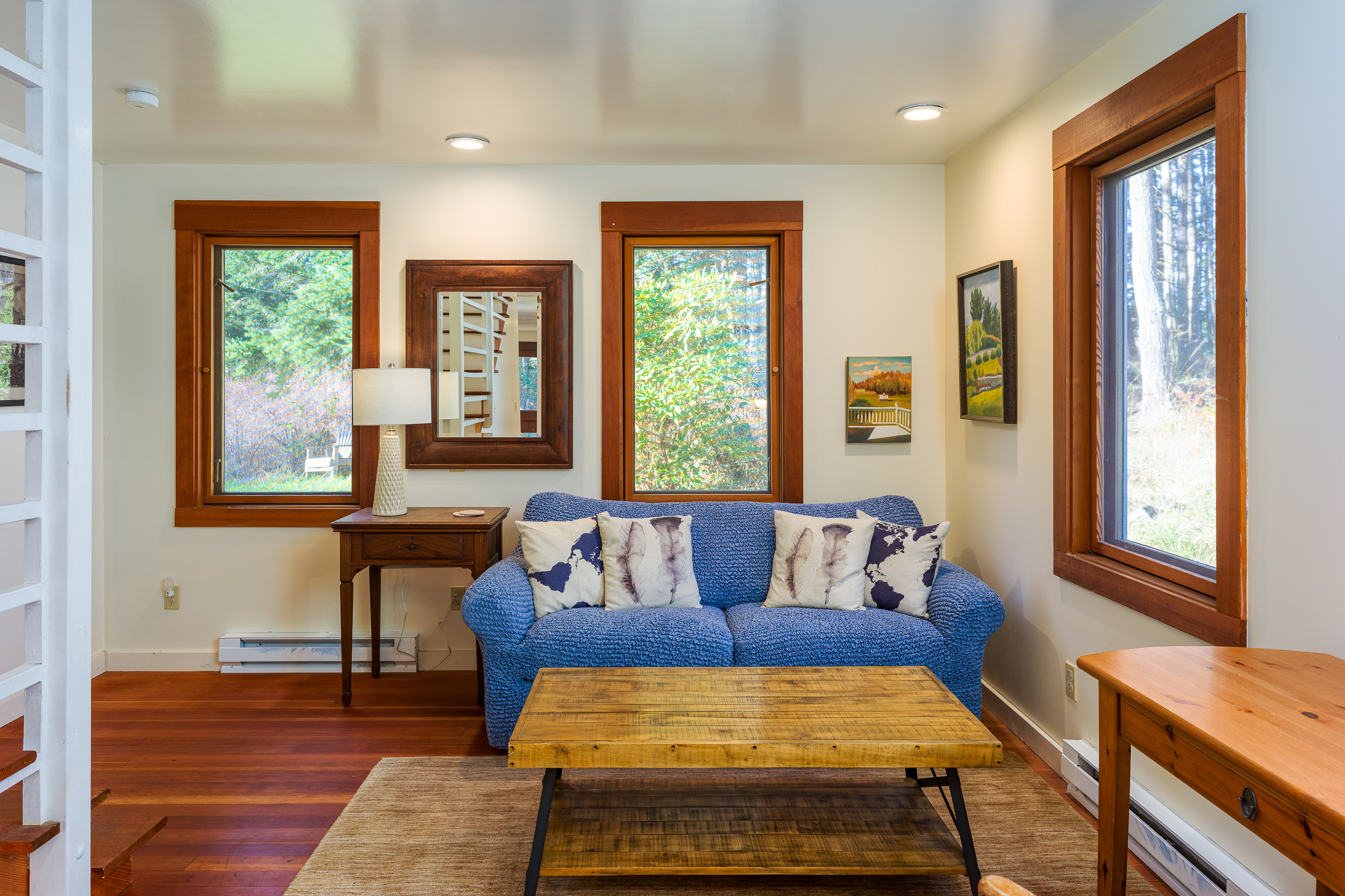 Set on 7 wooded acres, the property offers privacy and space for you and your dog to roam. The natural setting creates a peaceful retreat while still being just minutes from Eastsound and the ferry.