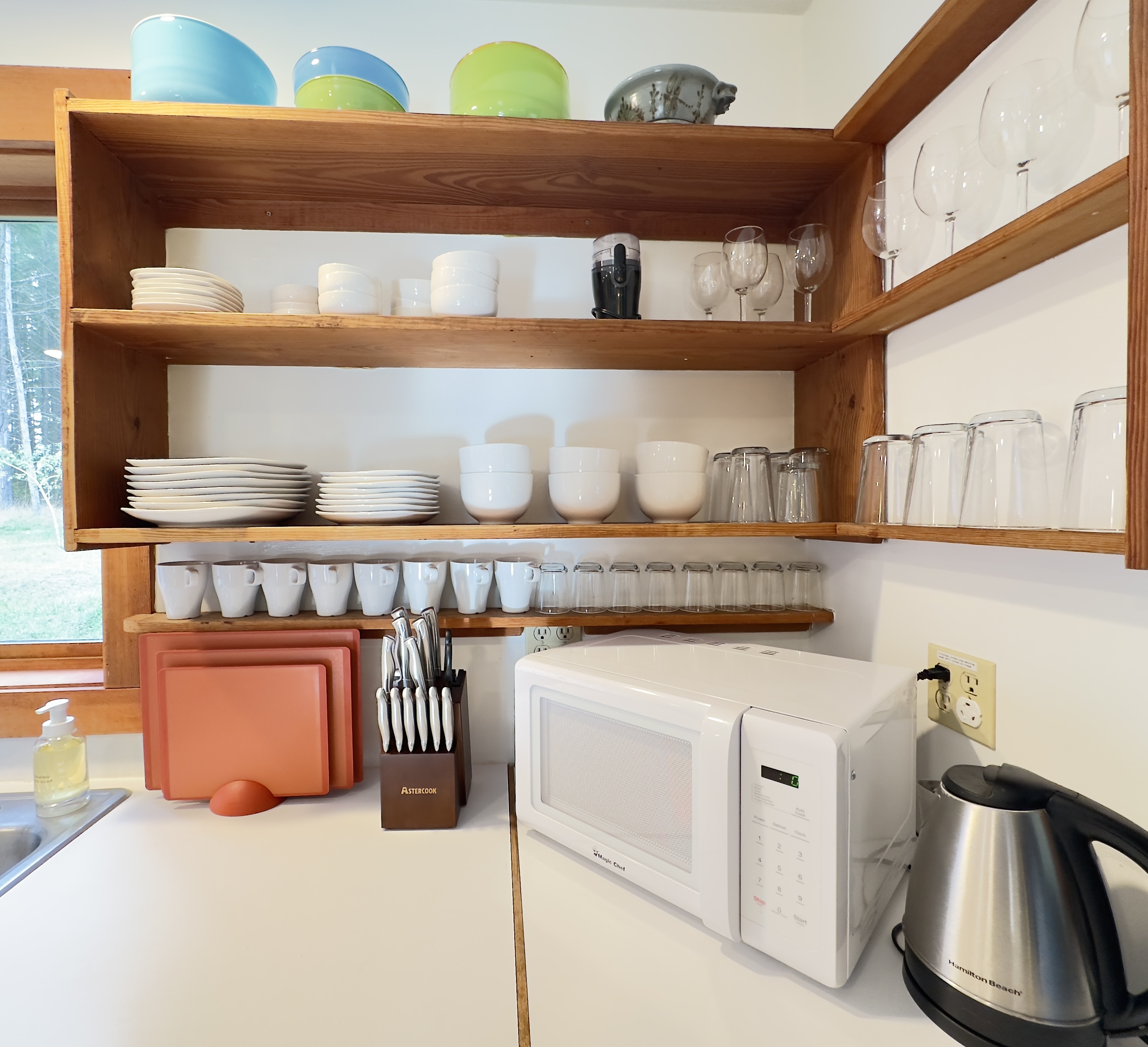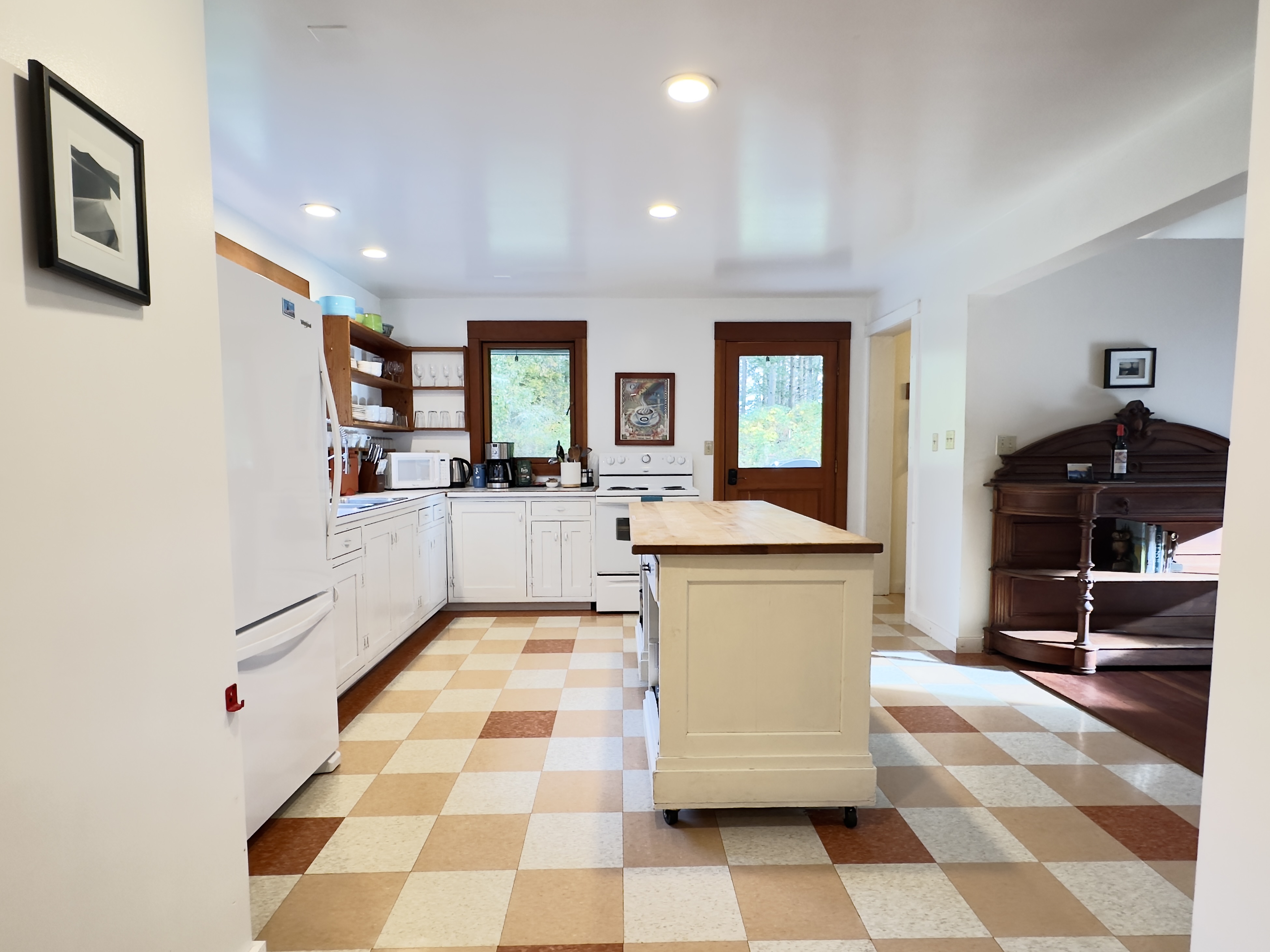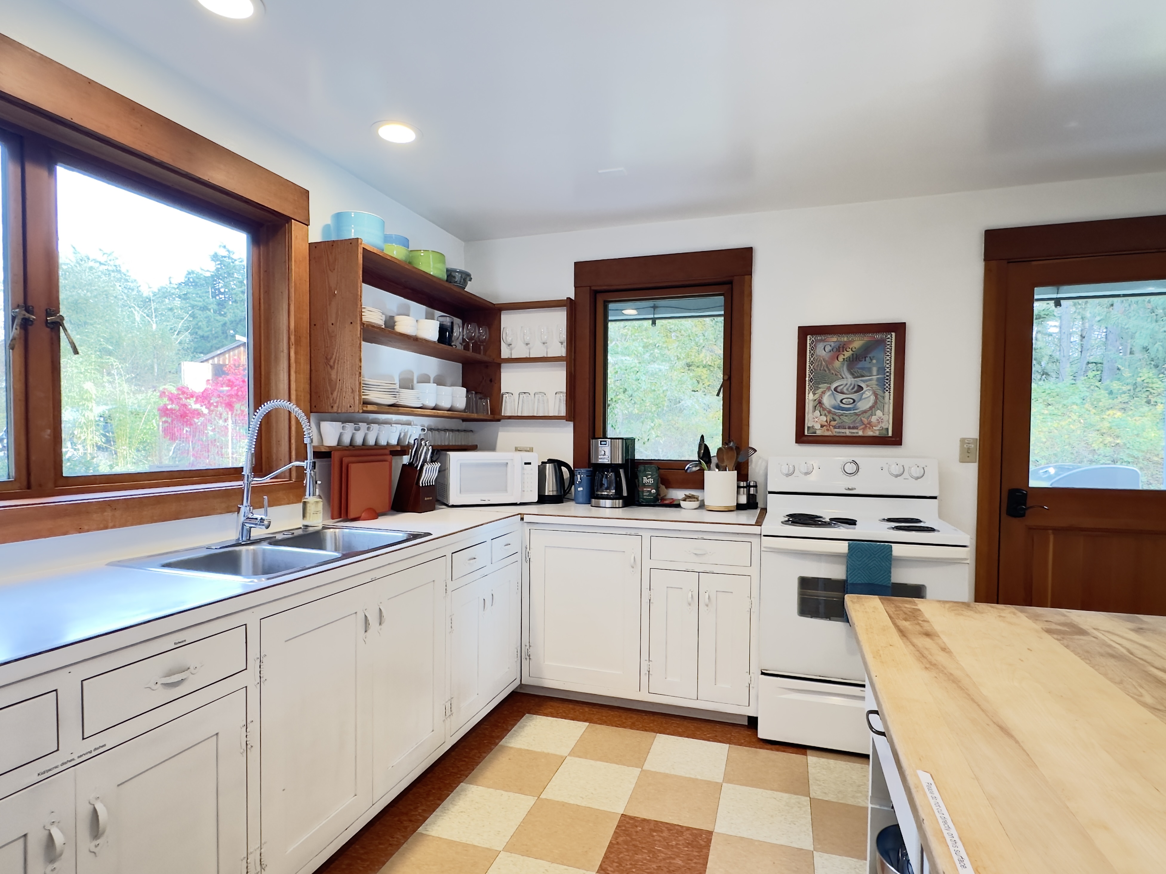Eating well is one of the best parts of going on vacation, so we've set up a kitchen you can really use. All the basics: a full oven/range, toaster, blender, French press, coffee grinder, electric coffee maker, and fridge. The microwave is in the pantry. All the pots and pans you could want, cooking utensils, etc. (If there's something you need for a particular dish, let us know when you're here and we might be able to come up with it!)