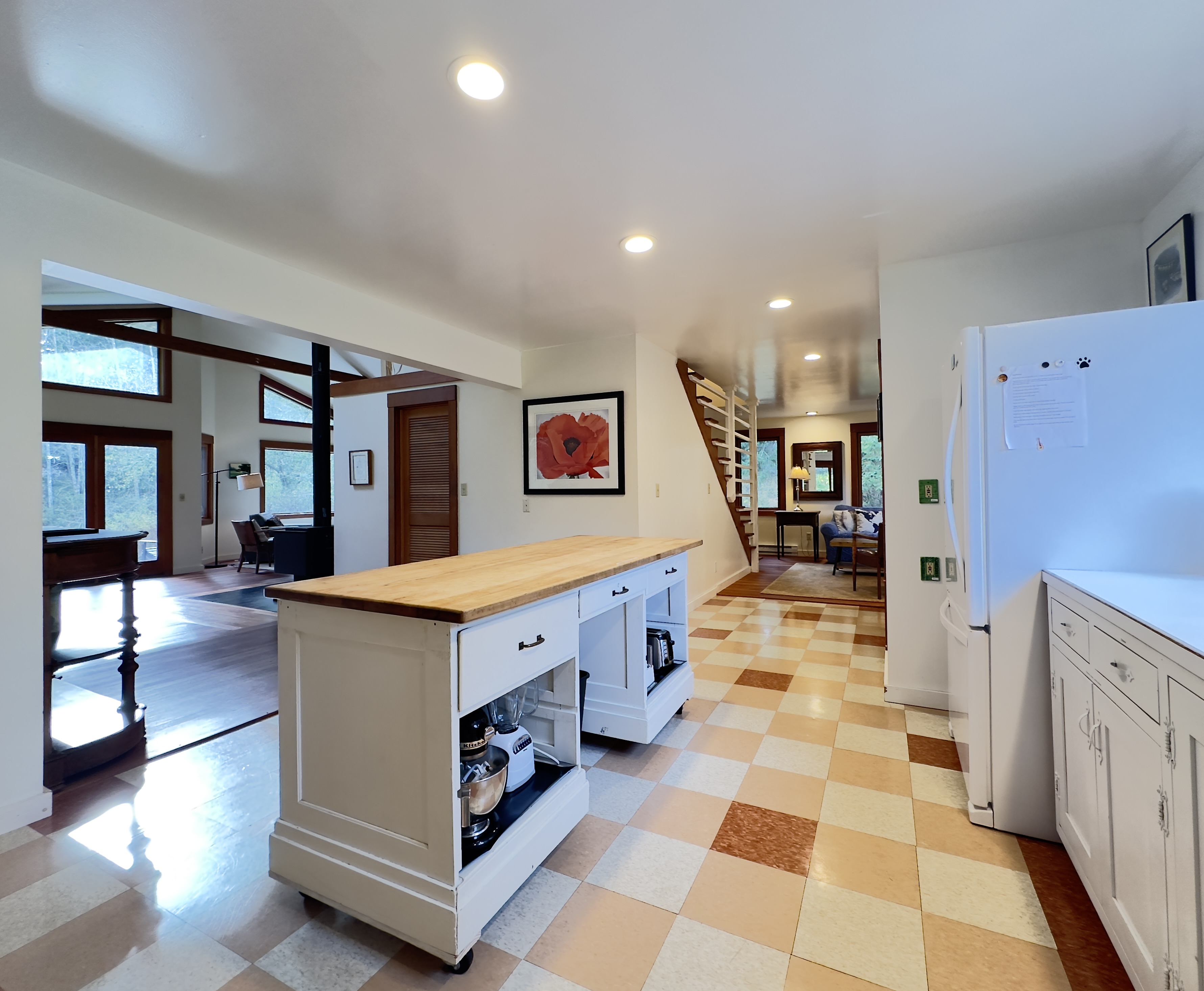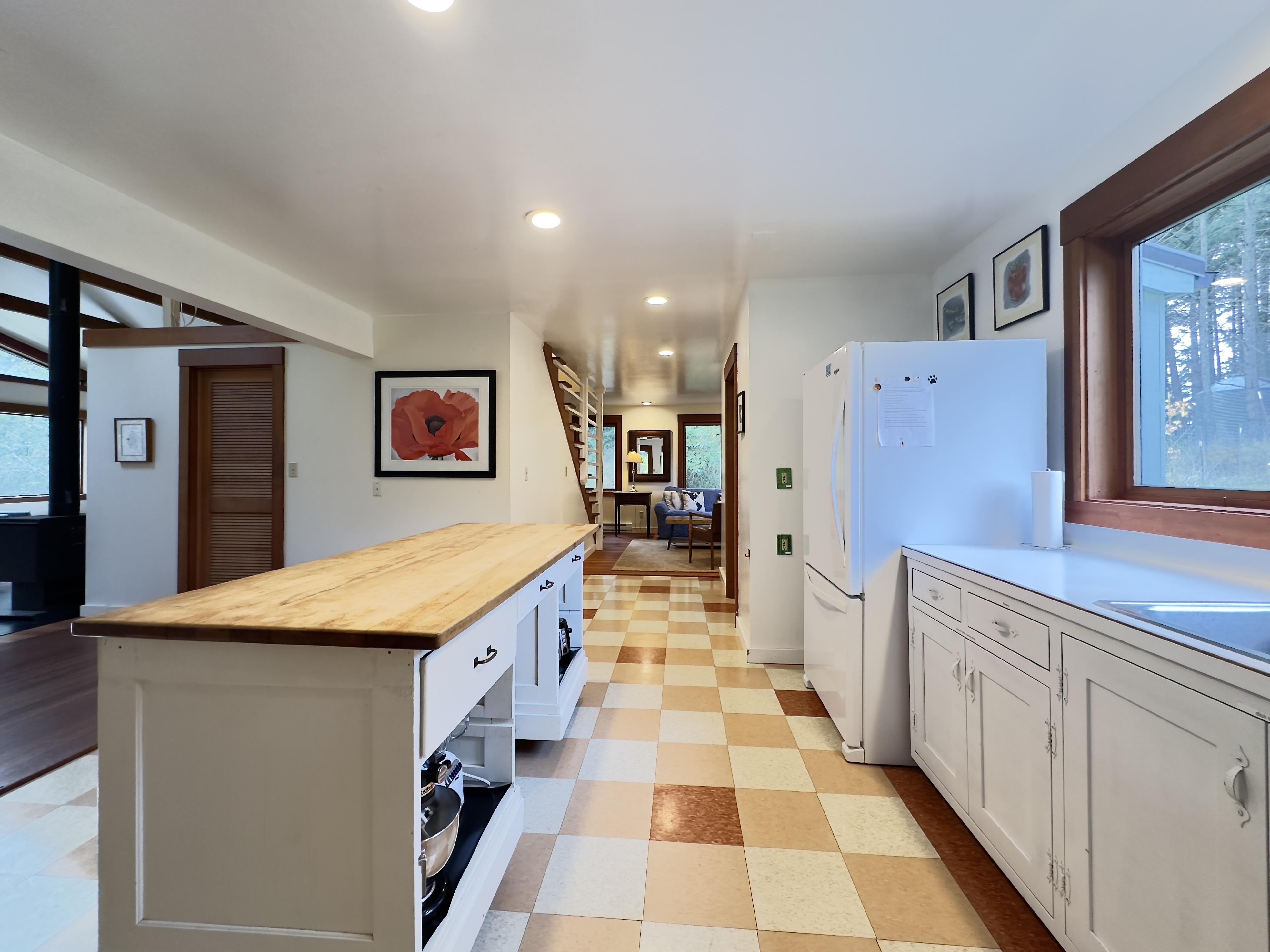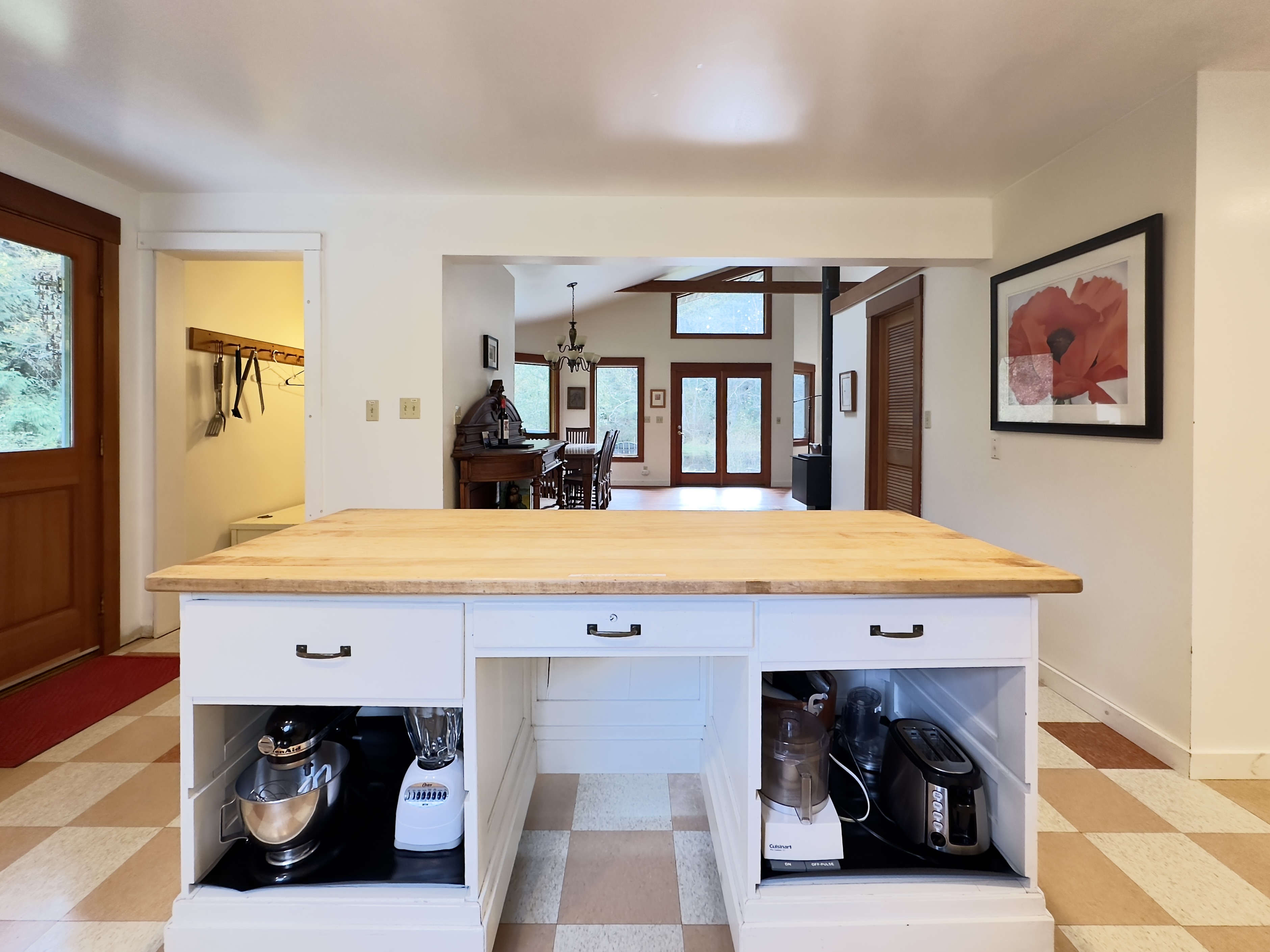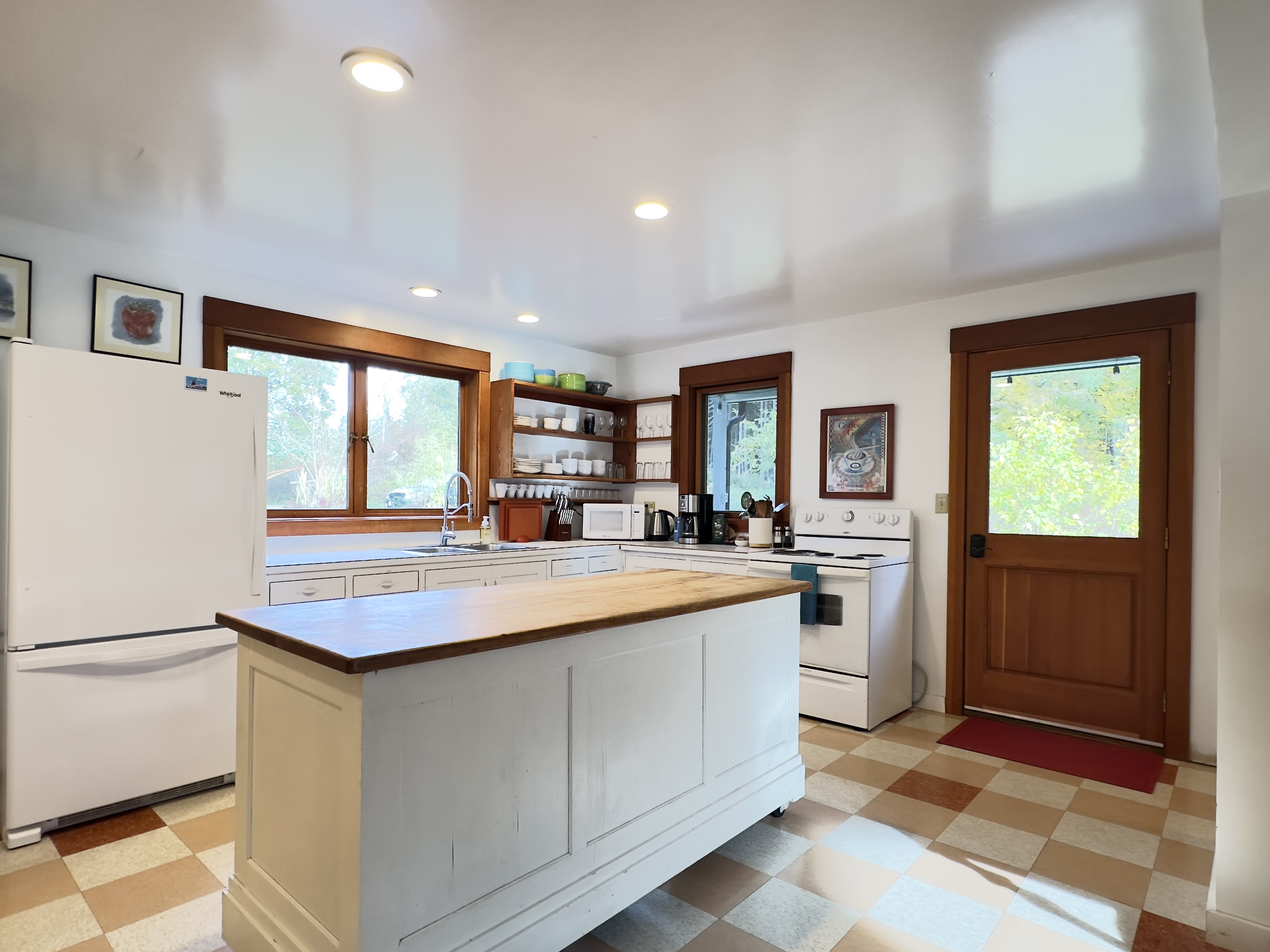 Eating well is one of the best parts of going on vacation, so we've set up a kitchen you can really use. All the basics: a full oven/range, toaster, blender, French press, coffee grinder, electric coffee maker, and fridge. The microwave is in the pantry. All the pots and pans you could want, cooking utensils, etc. (If there's something you need for a particular dish, let us know when you're here and we might be able to come up with it!)