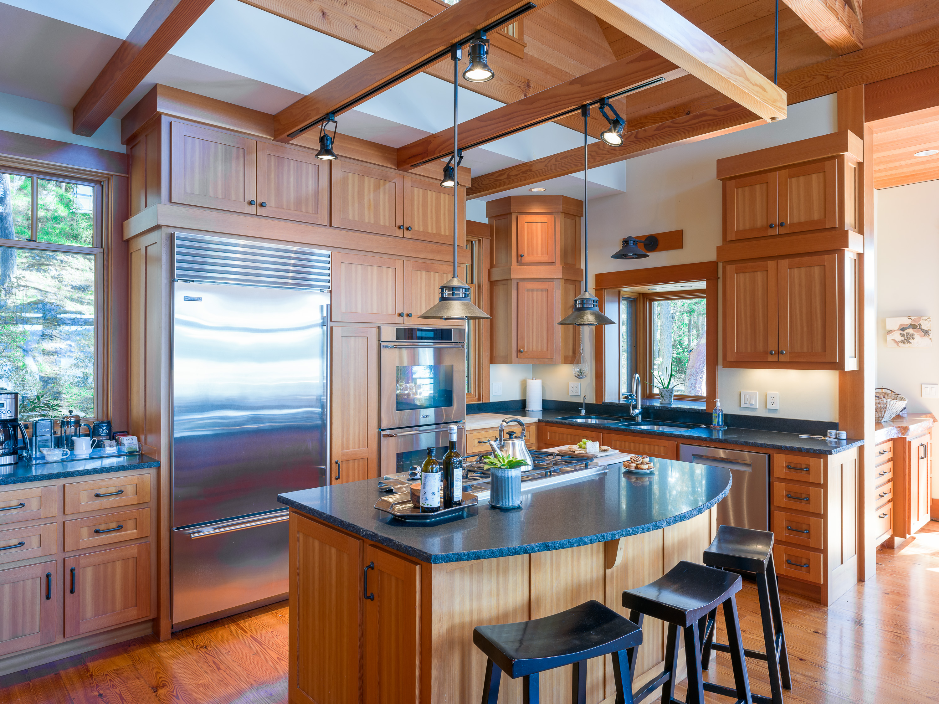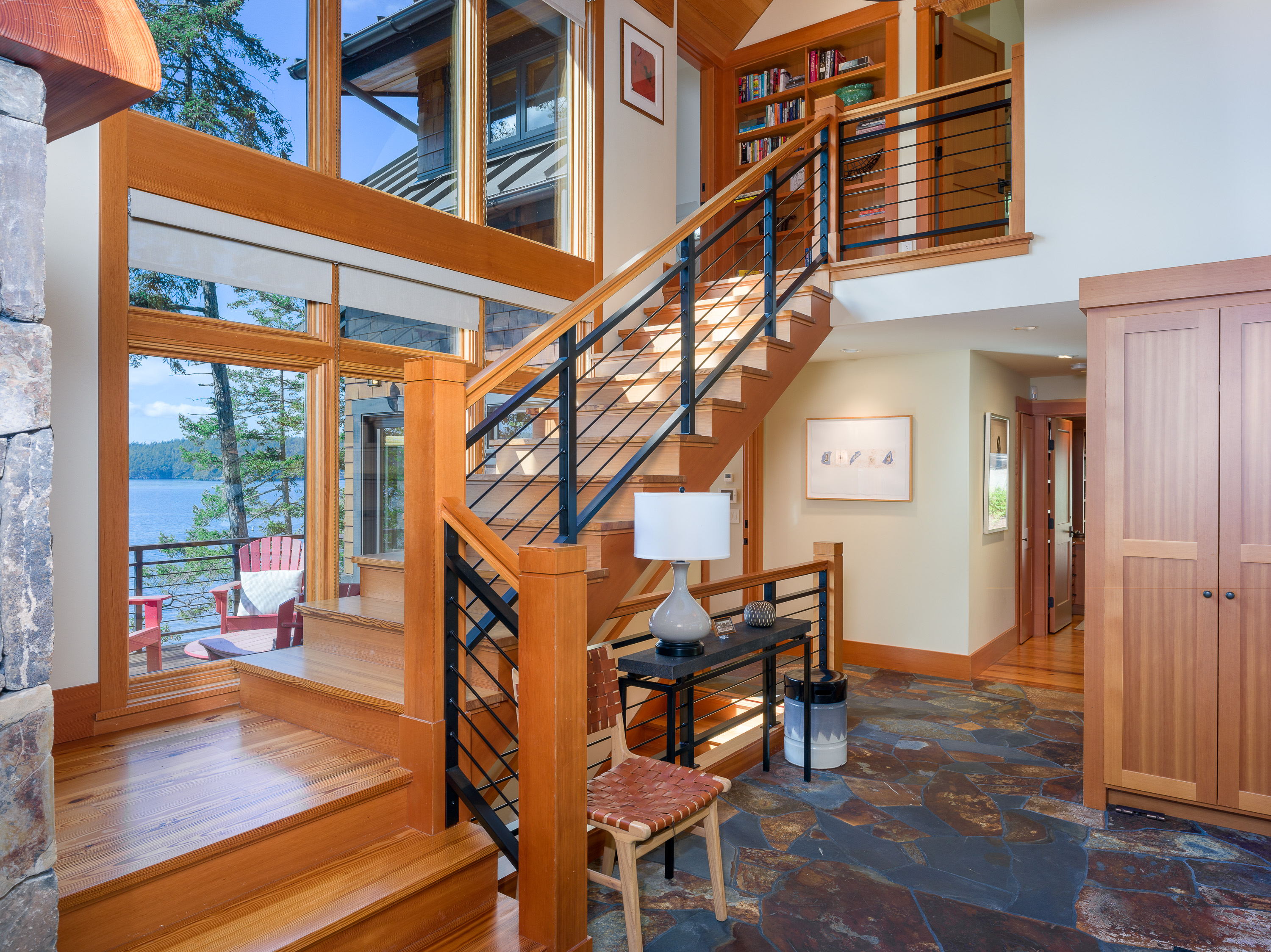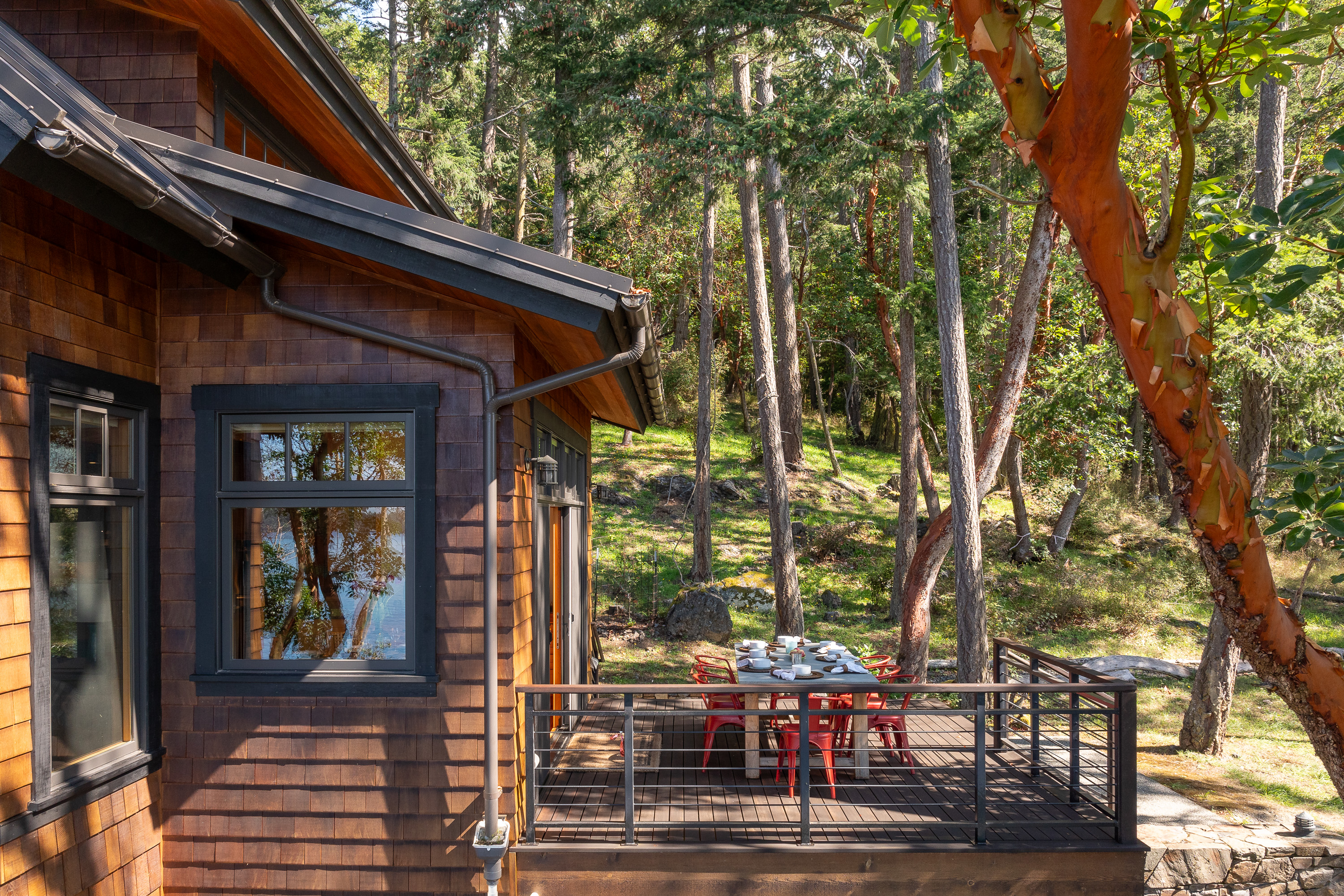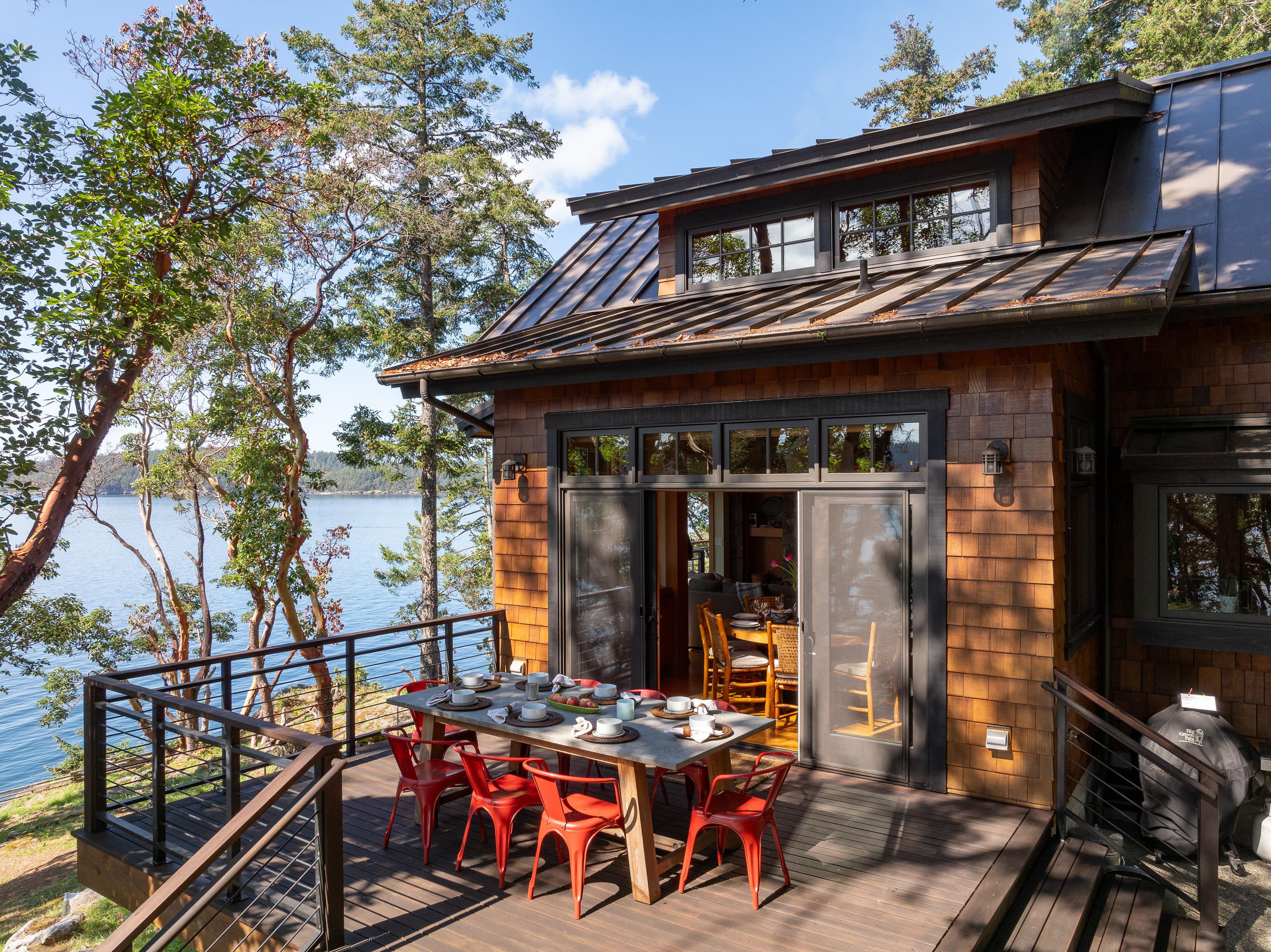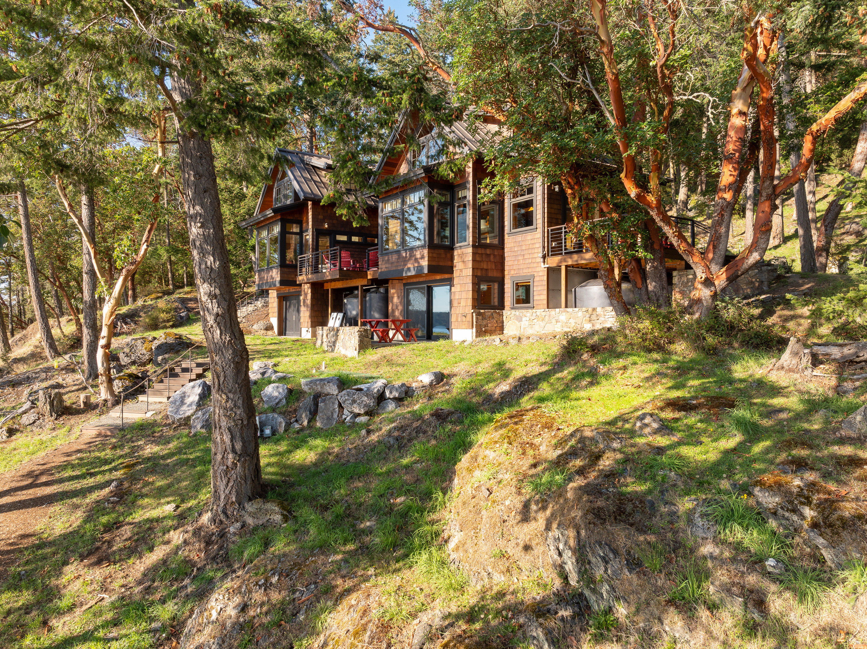 This beautiful home was designed by Vandervort Architects. It was built with sustainability in mind blending with its natural setting and southwest-facing water's edge. With five acres of Madrona and Fir Trees, you can take in the sunsets and abundant wildlife each day.