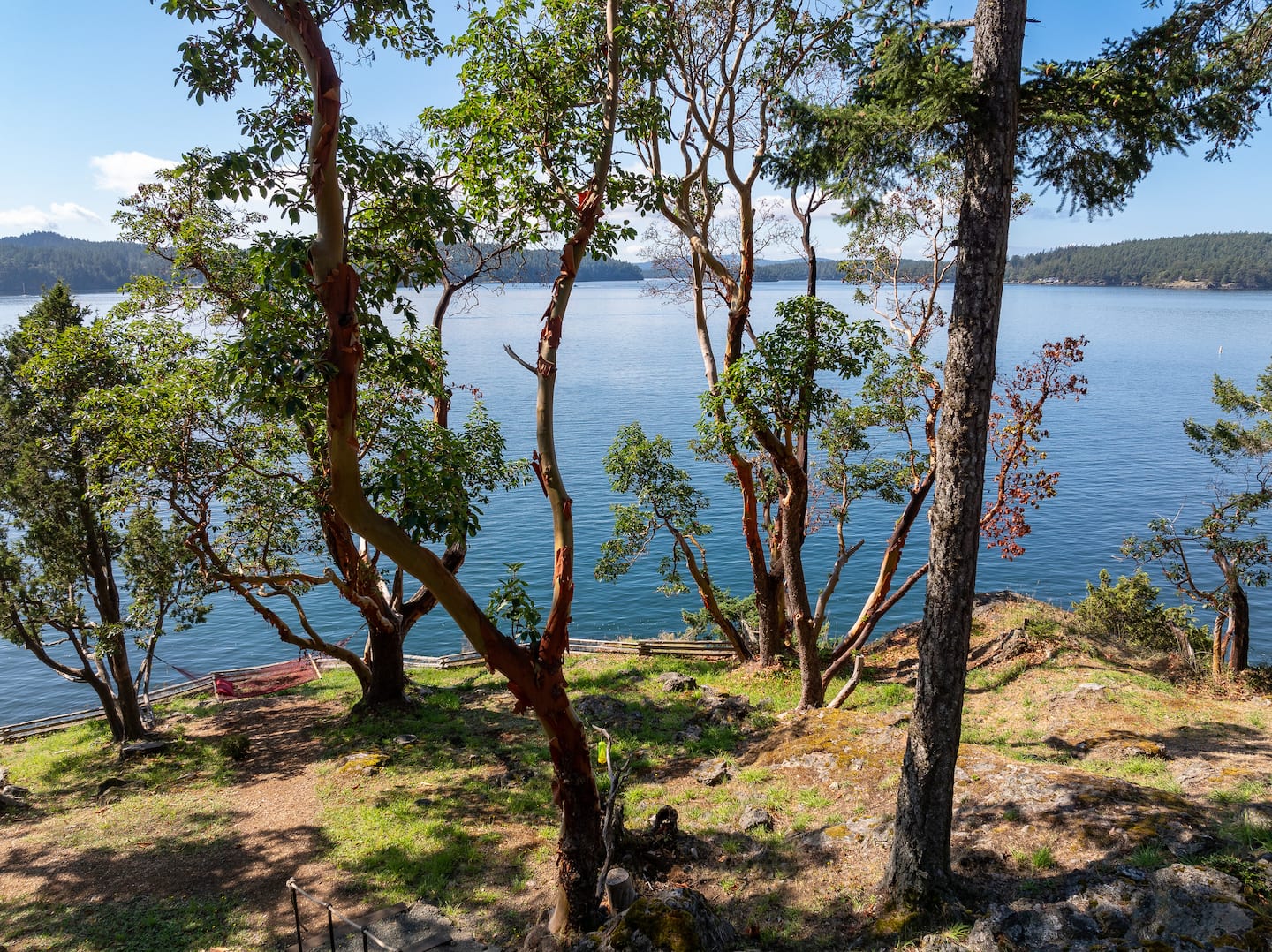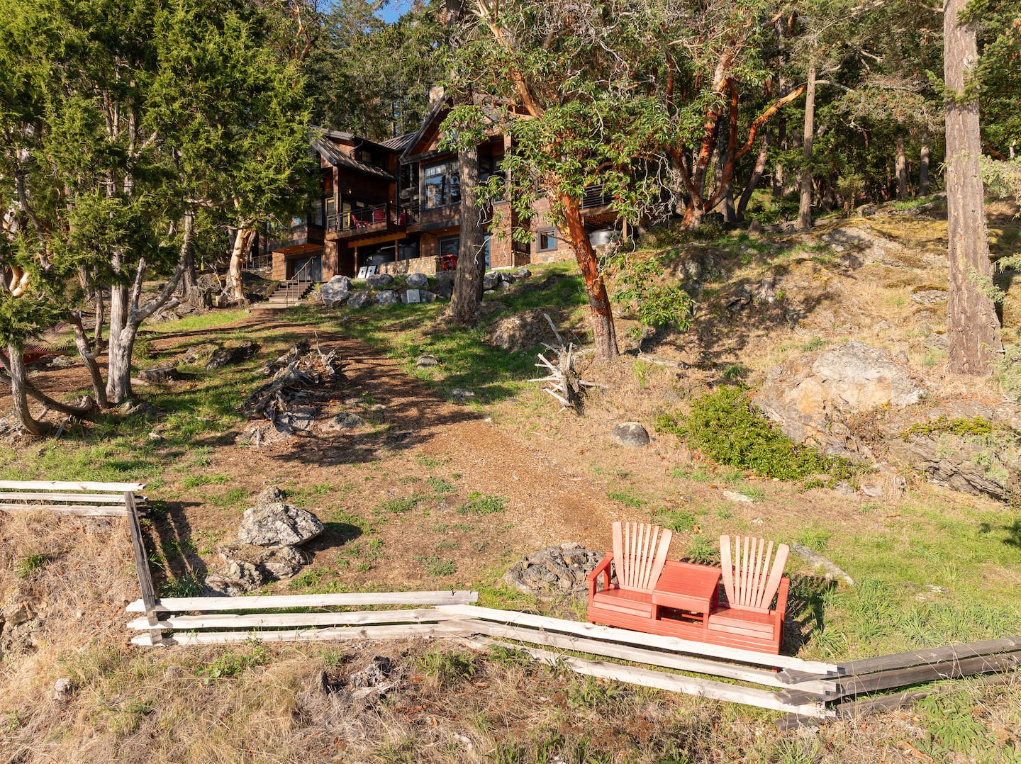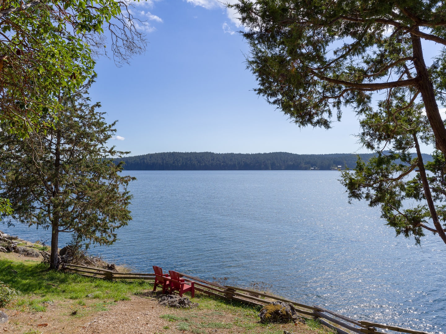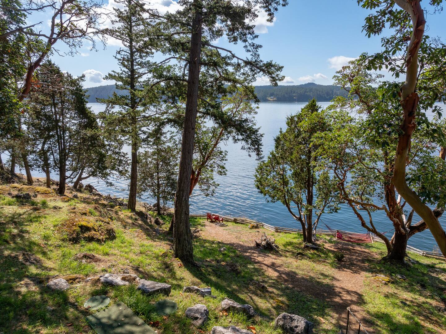 With end-of-the-road privacy, the home features a gorgeous stone fireplace, a Chef’s Kitchen, and heated tile flooring. Fiber optic internet makes remote work a breeze while adventure awaits right outside! Relax on the sun-filled decks, stroll through the Madrona trees, or cozy up around the outdoor fireplace. Hook’s Nest is the perfect island getaway.