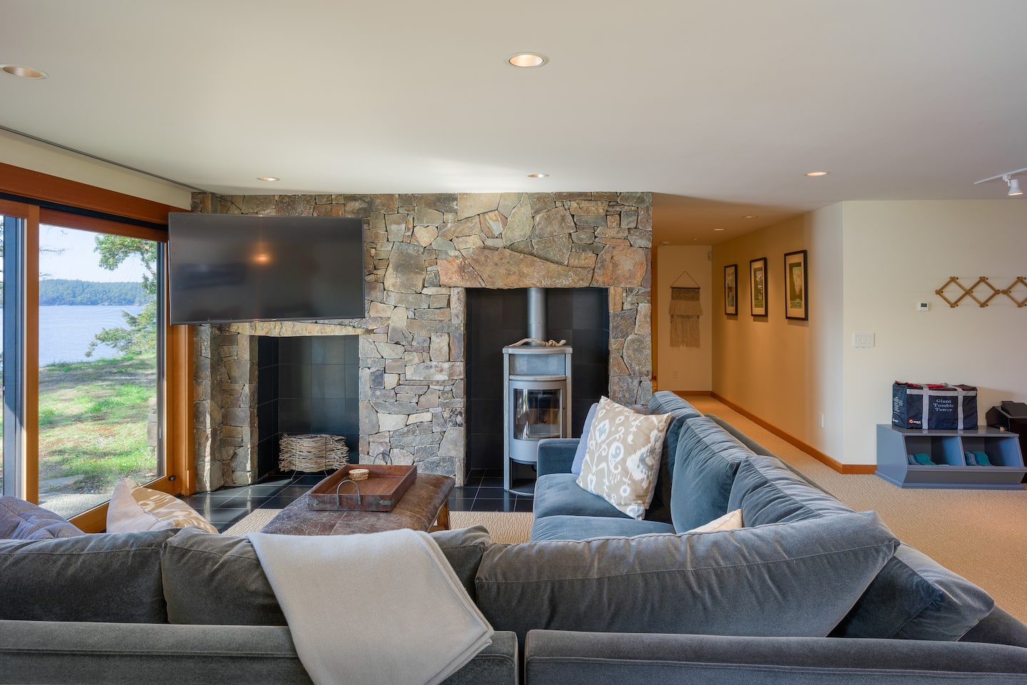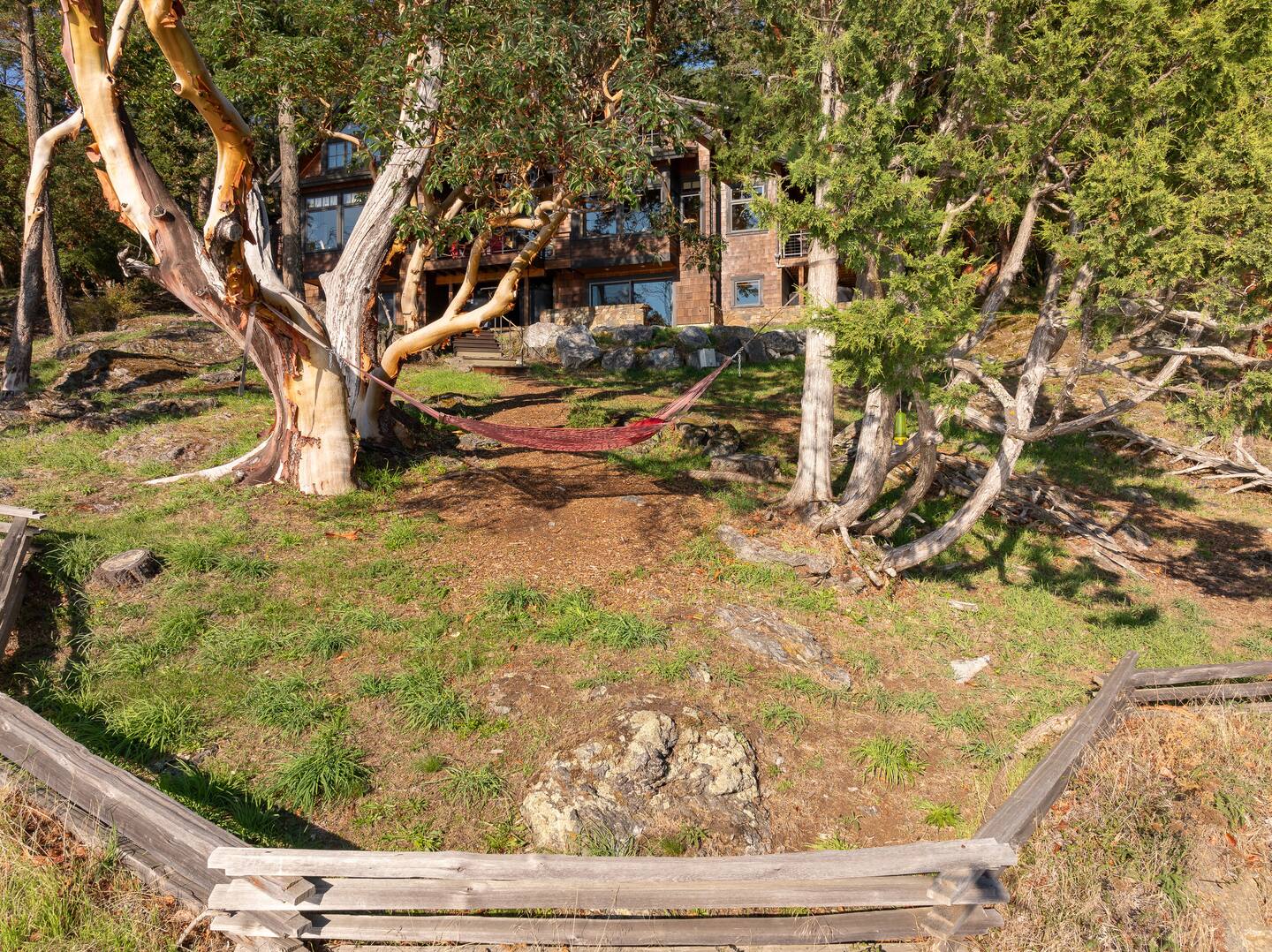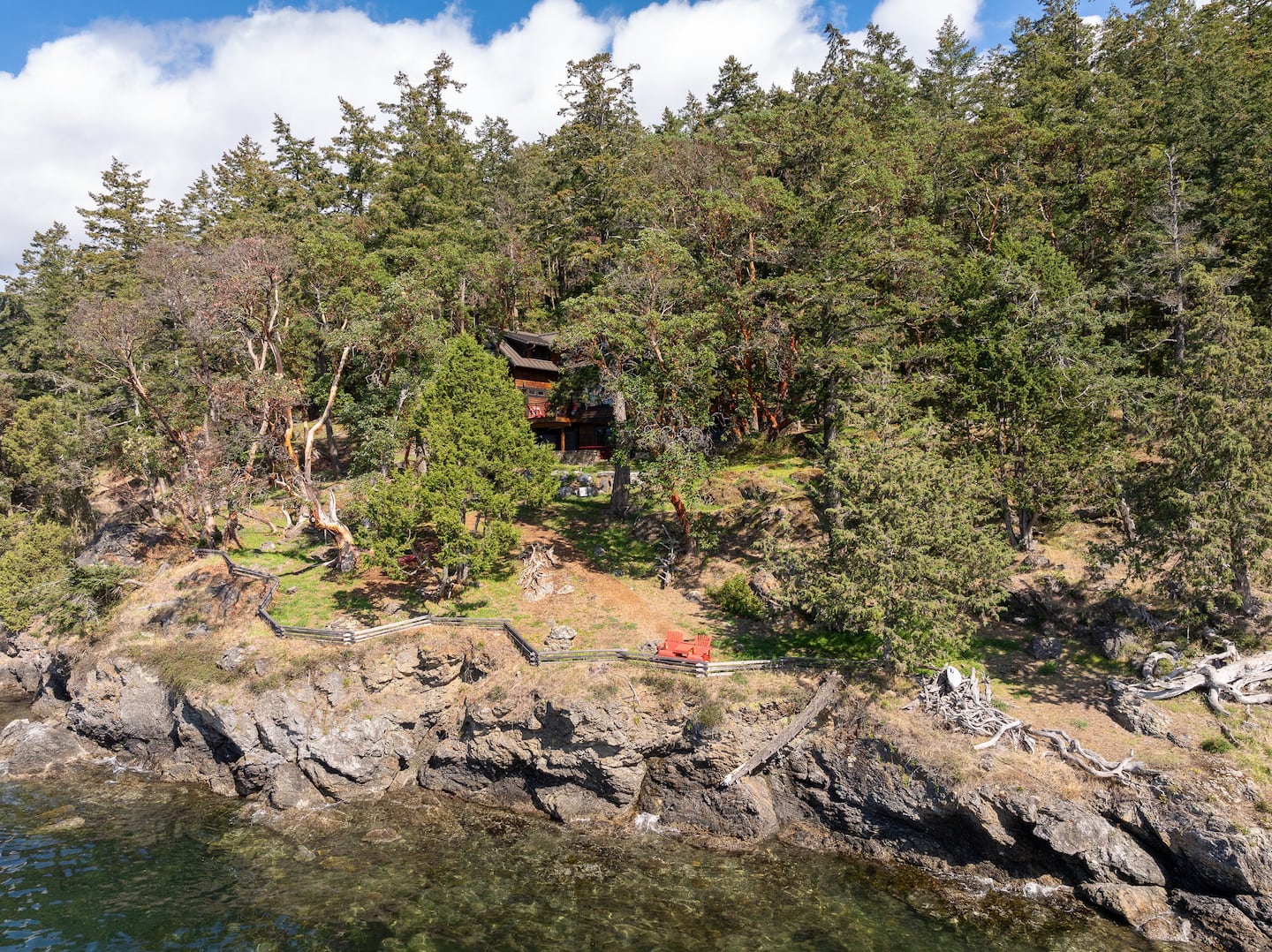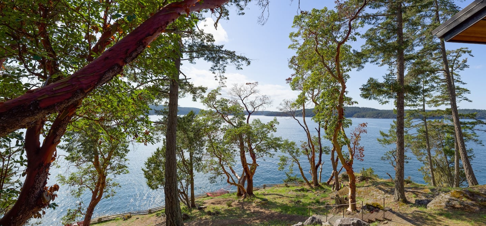 With end-of-the-road privacy, the home features a gorgeous stone fireplace, a Chef’s Kitchen, and heated tile flooring. Fiber optic internet makes remote work a breeze while adventure awaits right outside! Relax on the sun-filled decks, stroll through the Madrona trees, or cozy up around the outdoor fireplace. Hook’s Nest is the perfect island getaway.