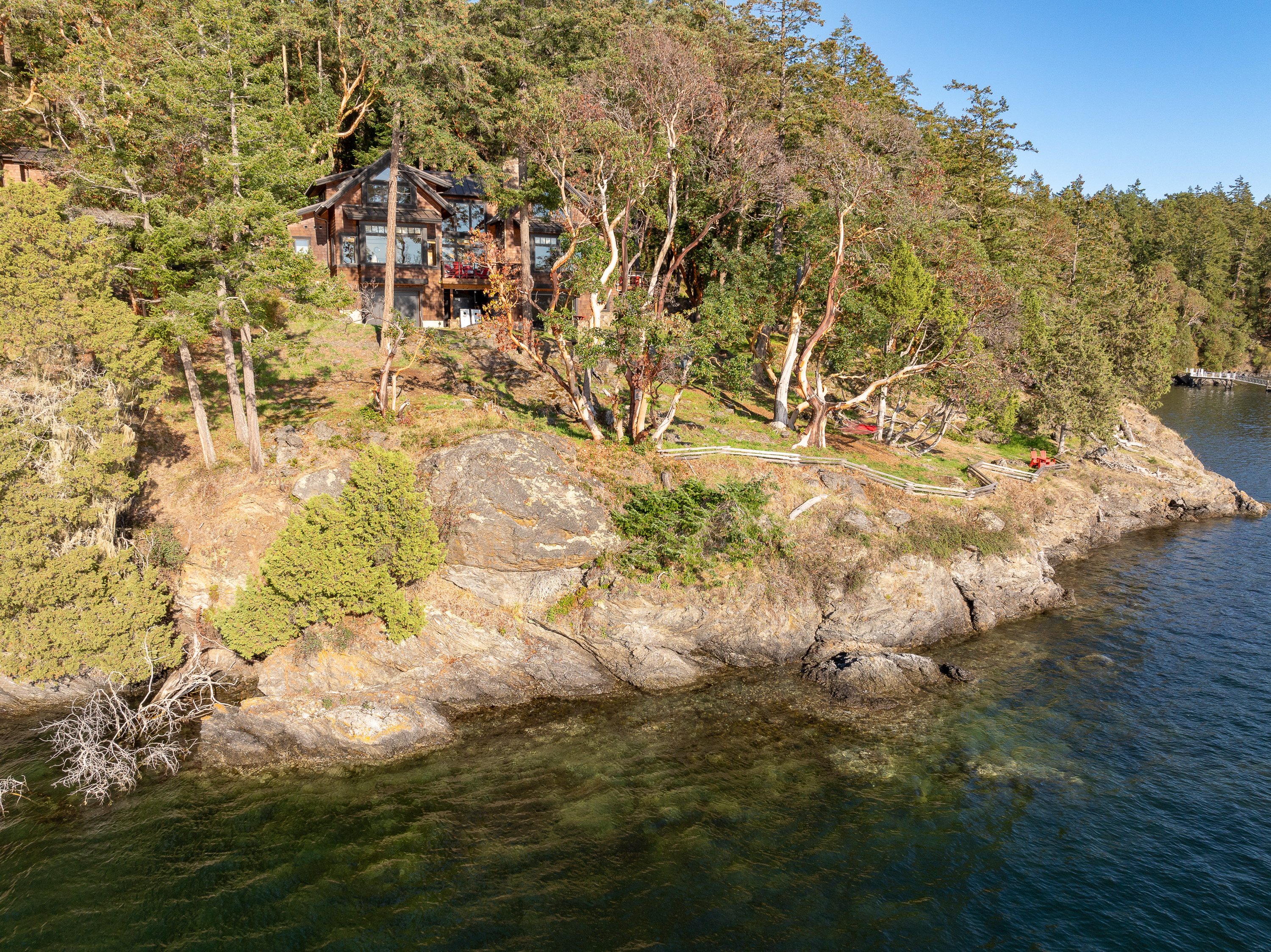 With year-round sunsets, this exceptionally crafted quintessential Northwest home has end-of-the road privacy and over 400ft. of rocky shoreline. The home features a gorgeous stone fireplace, Chef’s Kitchen, and heated tile flooring. Fiber optic internet allows for remote work while adventure awaits right outside your door! Enjoy the water views from one of the sun-filled decks, take a stroll through the Madrona Trees or cozy up around the outdoor fireplace. This is a perfect island getaway!