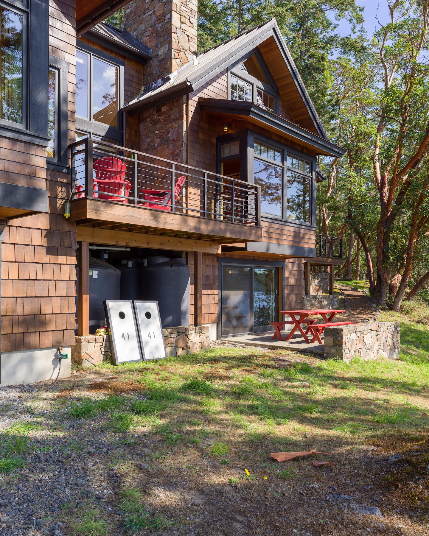 With end-of-the-road privacy, the home features a gorgeous stone fireplace, a Chef's Kitchen, and heated tile flooring. Fiber optic internet makes remote work a breeze while adventure awaits right outside! Relax on the sun-filled decks, stroll through the Madrona trees, or cozy up around the outdoor fireplace. Hook's Nest is the perfect island getaway.