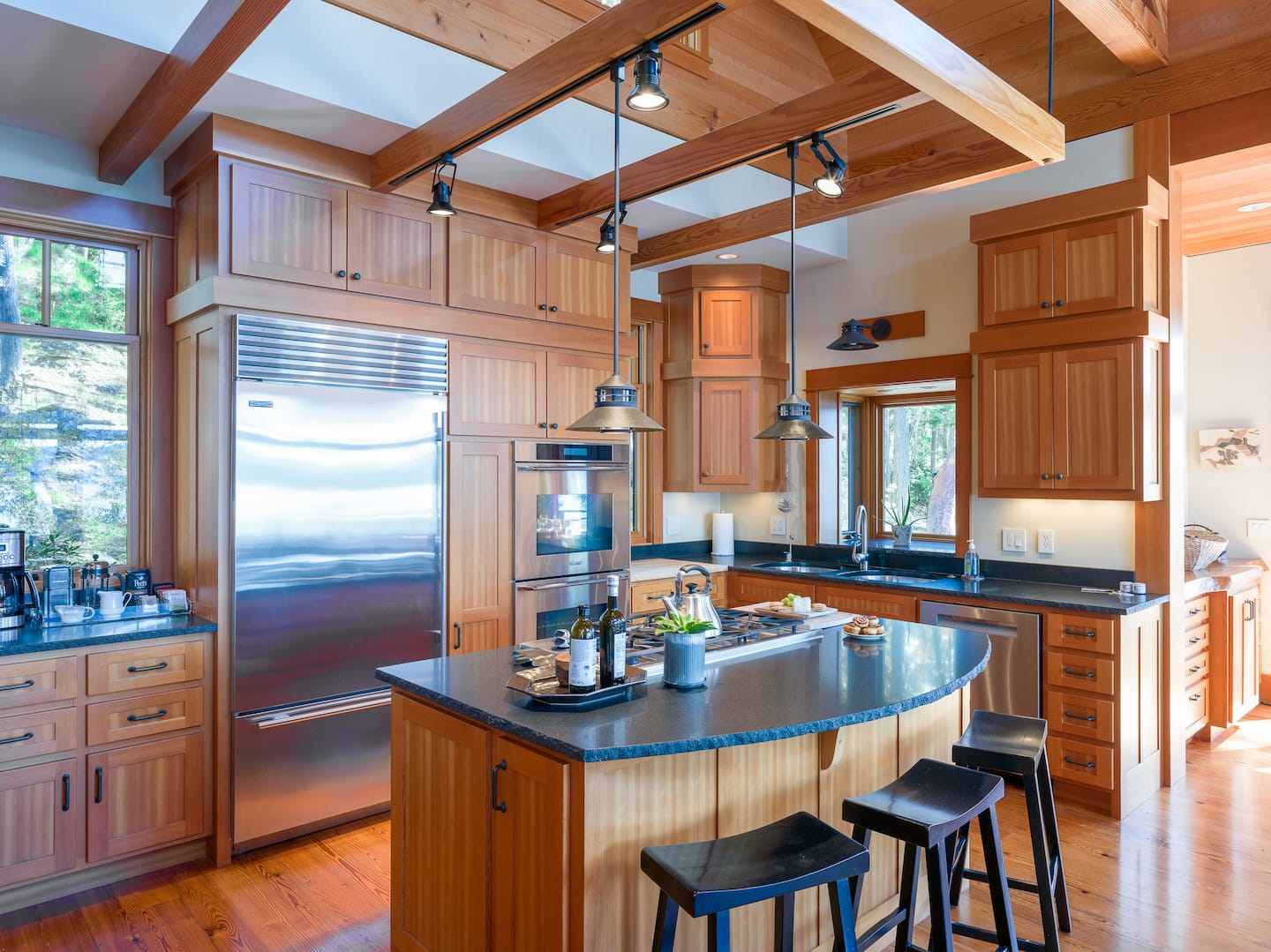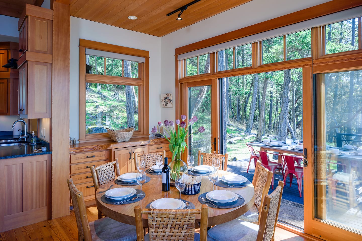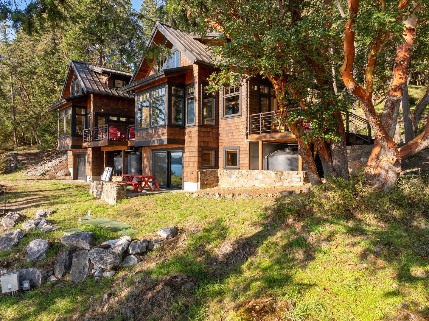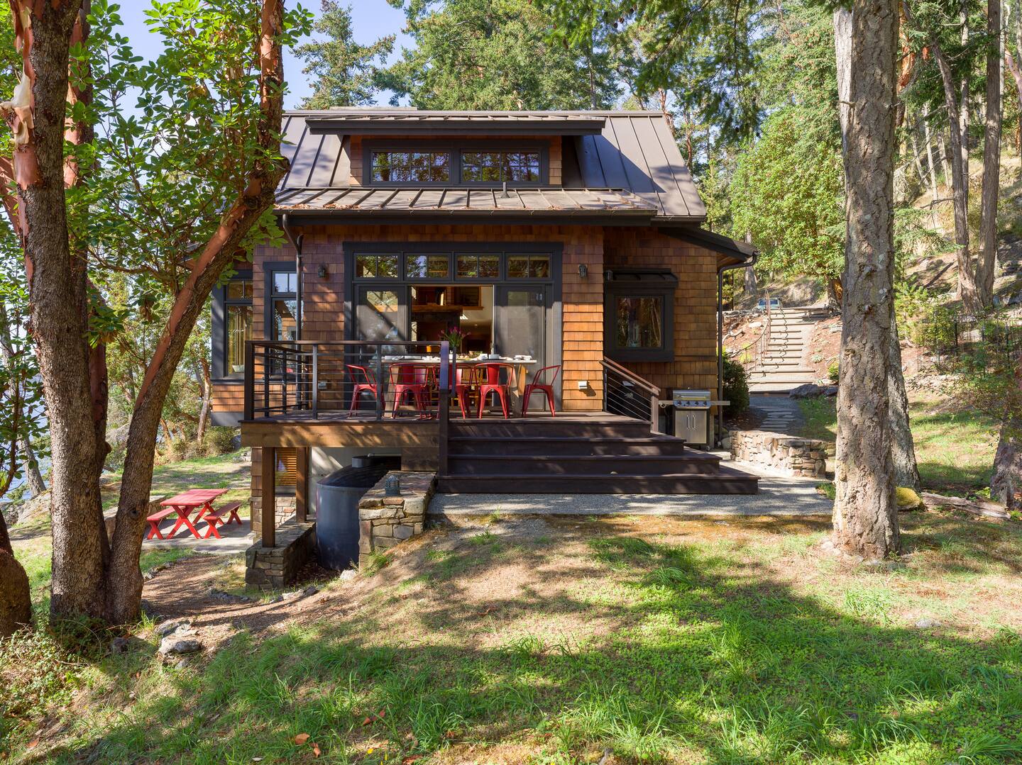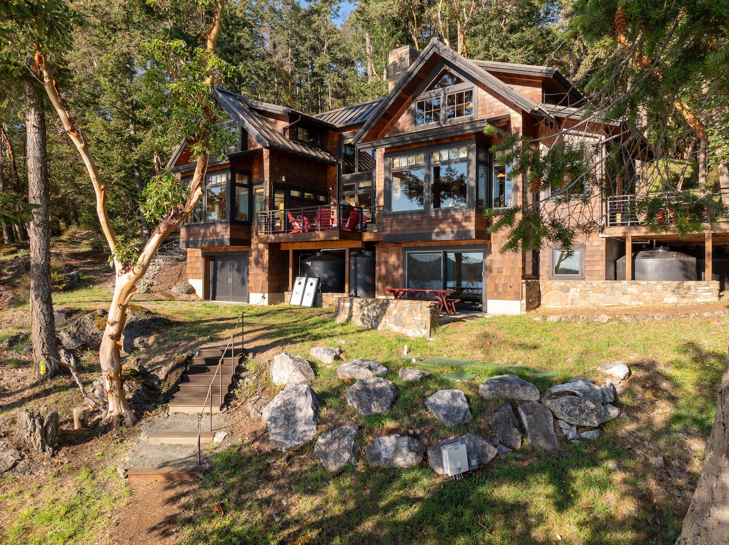 Designed by Vandervort Architects, our home blends sustainability with its natural setting. Placed along the southwest-facing water's edge, surrounded by five acres of Madrona and Fir trees, this home is intentionally designed to take in the breathtaking sunsets and enjoy the abundant wildlife every day! 🌲