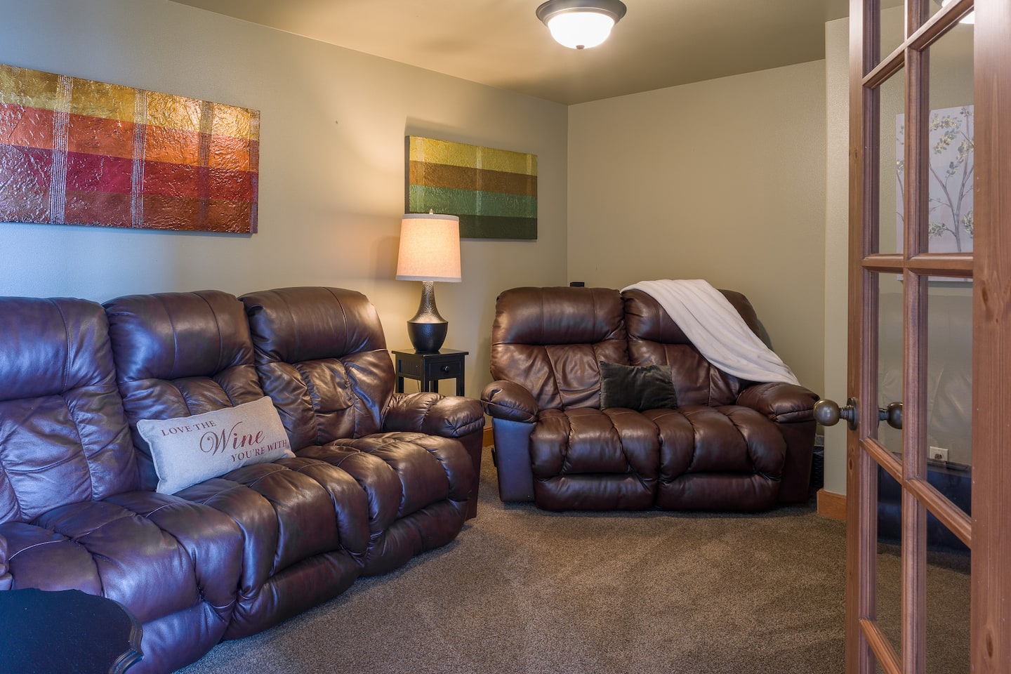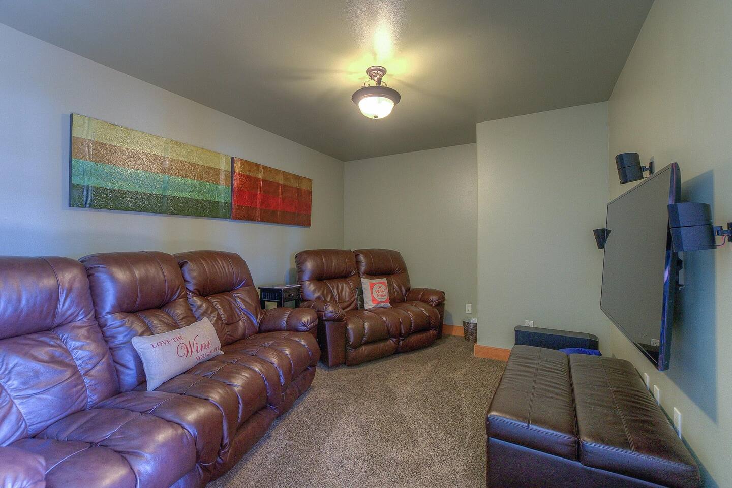Just off the living area is the private theater and gaming room, complete with seating for the whole family. The Smart TV offers endless entertainment options for everyone.