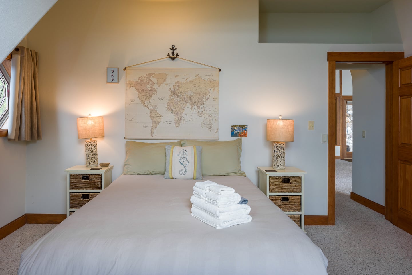 The Main House has three queen beds and sleeps a maximum of six guests. If you plan to only use the main house, please enter six guests or less in your reservation quote.