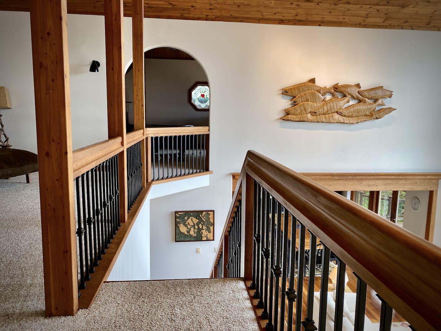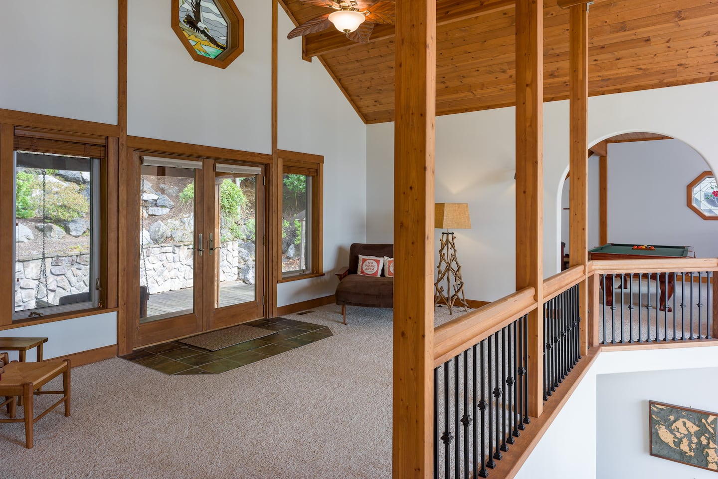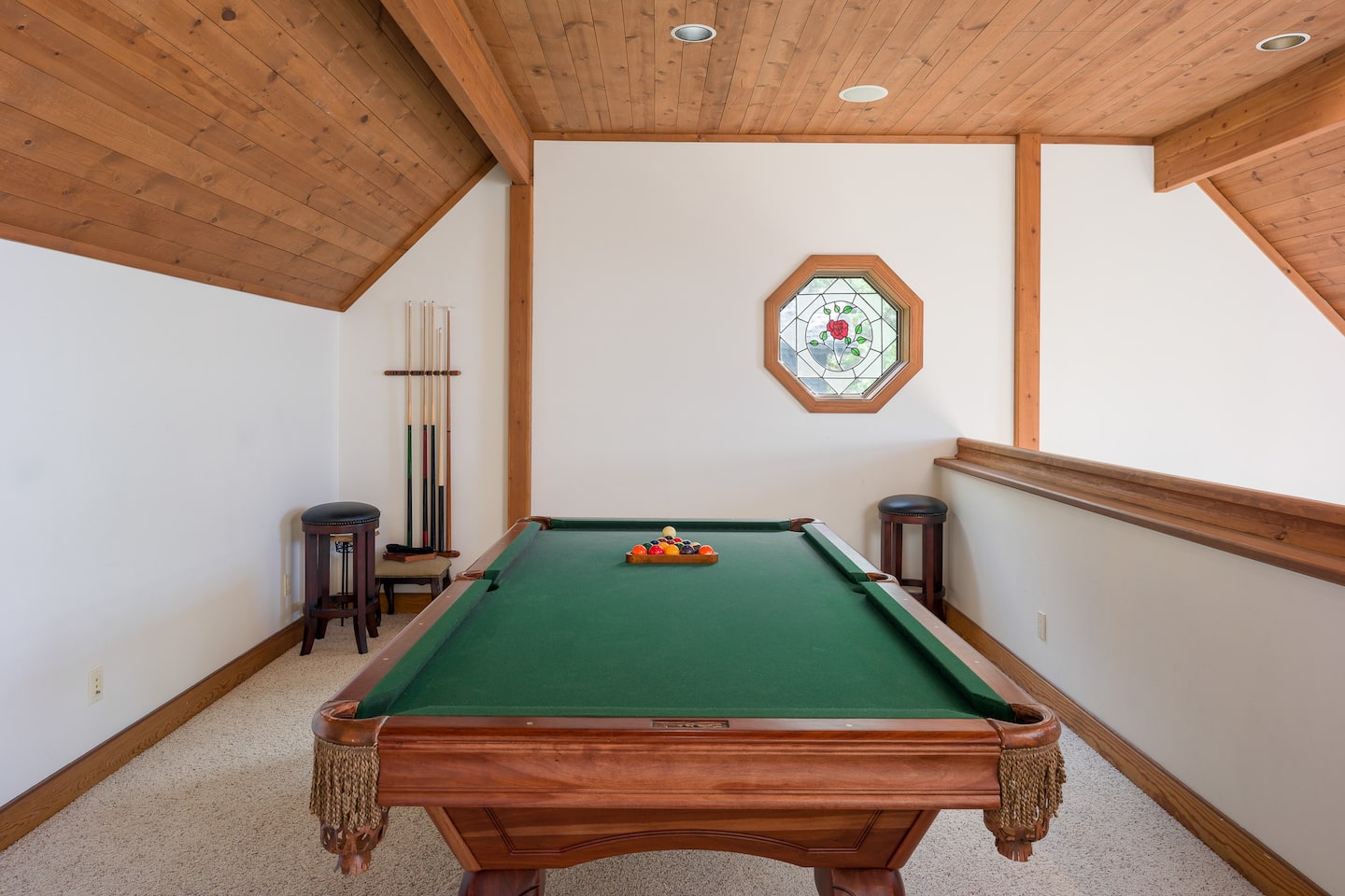 Upstairs, you’ll find a reading loft and a beautifully carved pool table, complete with all the accessories (including a few how-to books). After a fabulous meal, enjoy some fun and games in the pool room!