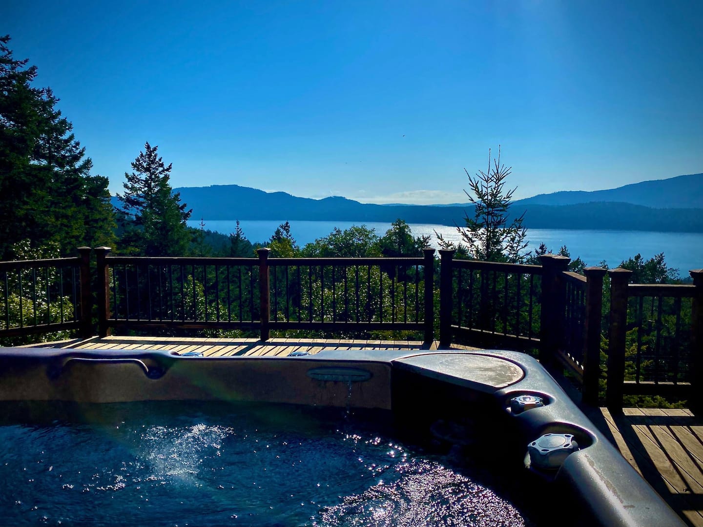 Relax under the stars in your private spa and hot tub! With an outdoor shower, a three-person Finnish sauna, and a six-person hot tub, Island Mountain Lodge becomes a luxurious retreat. Treat yourself to a soak while watching the stunning sunset sky over Eastsound.