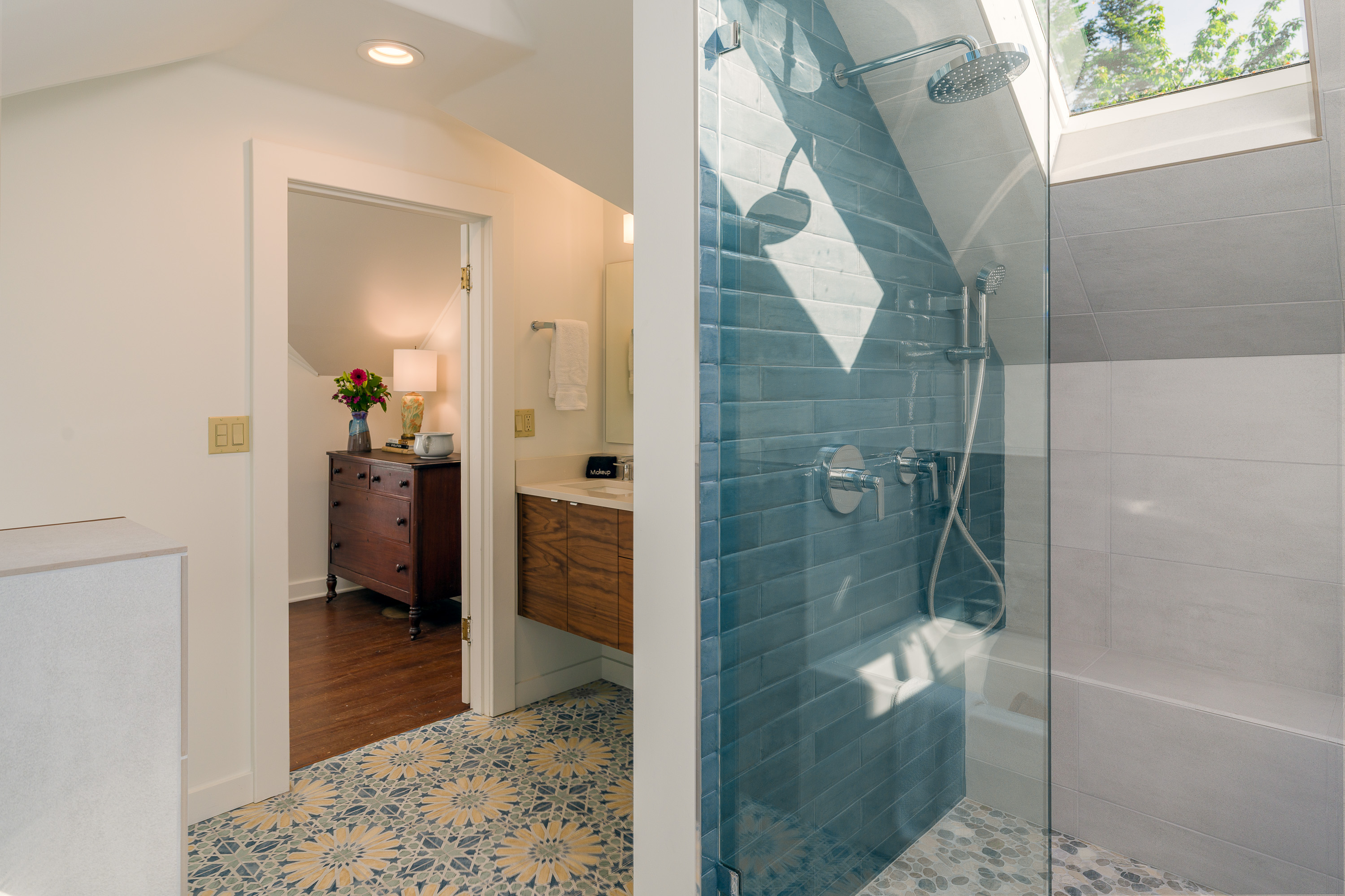 The primary bedroom, The Waterview, provides a peaceful sanctuary for rest and relaxation, while the additional bedrooms offer plenty of space for family and guests. Each room offers a reading chair, luxury linens and throws, and amazing views. The upstairs bedrooms share an extraordinary bathroom with a custom walk-in shower, double vanity and separate soaker tub.