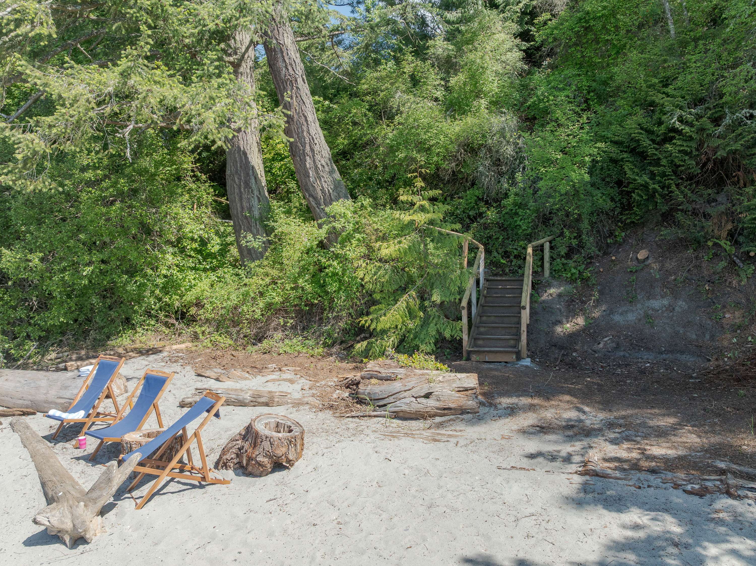 One of the greatest features of this property is the sandy, private beach below. You have a section of beach for your exclusive use. Head down the trail, and you'll find a remote paradise for strolling, shell collecting, and watercraft. Bring your paddleboard and kayak to explore the shoreline. We provide beach chairs that can be tied up below for your convenience, and beach towels for your use. Though its hard to see, there are neighbors up and down the beach that also stroll by. Say hi, and please respect their section of beach and privacy. You can linger and play all you want on your piece of this sandy heaven.